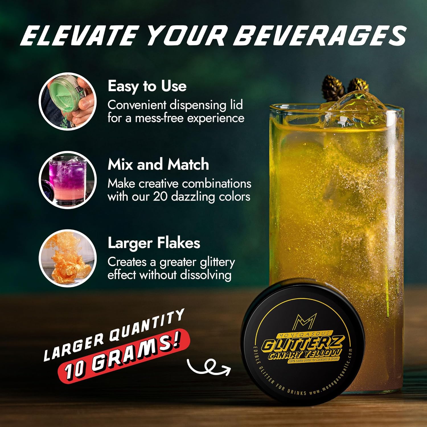 - VERSATILE, EASY, & MESS-FREE – Effortlessly enhance any dish or drink. Simply sprinkle MONÉGASQUE Glitterz onto halloween cocktails or desserts for a dazzling effect. With 20 vibrant colors, it's perfect for any event, keeping your creations stunningly fresh.