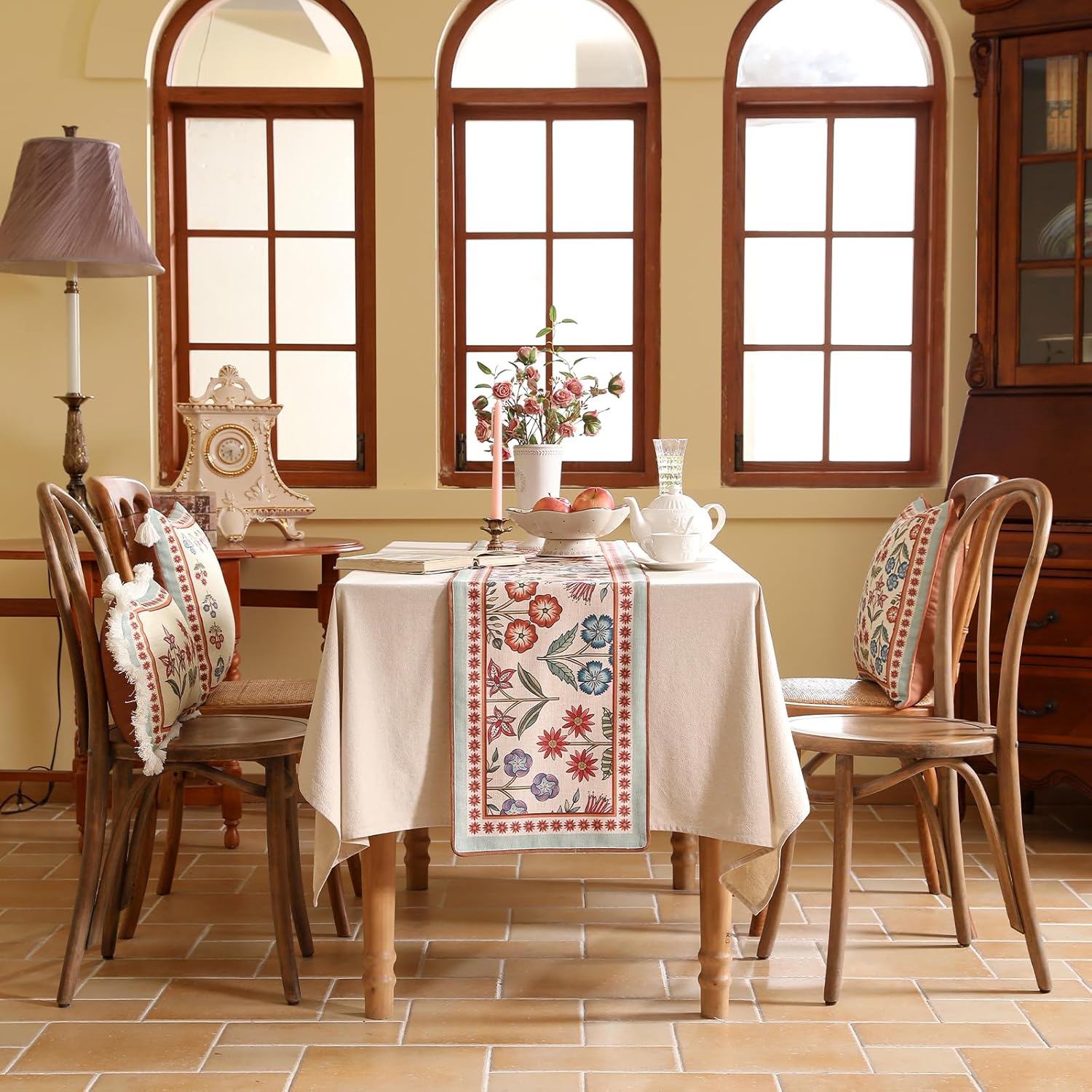 Decorative Linen Table Runner 87 Inches Long,Green Floral Rustic Farmhouse Runner for Table Decor Tabletop Table Runners for Kitchen,Dining,Party,Home,Christmas,12"*87"