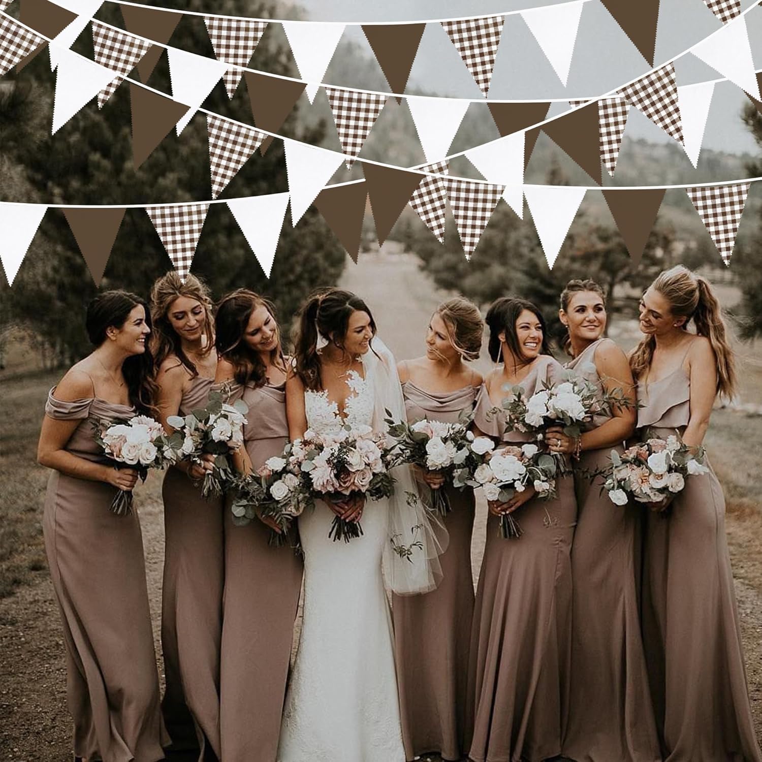 - Package Including:1 pack coffee brown buffalo plaid checkered gingham fabric bunting banner garland in brown and white colors, with 36pcs flags in 10M/32.8Feet. Flag Size: 5.5in width x 7in height.