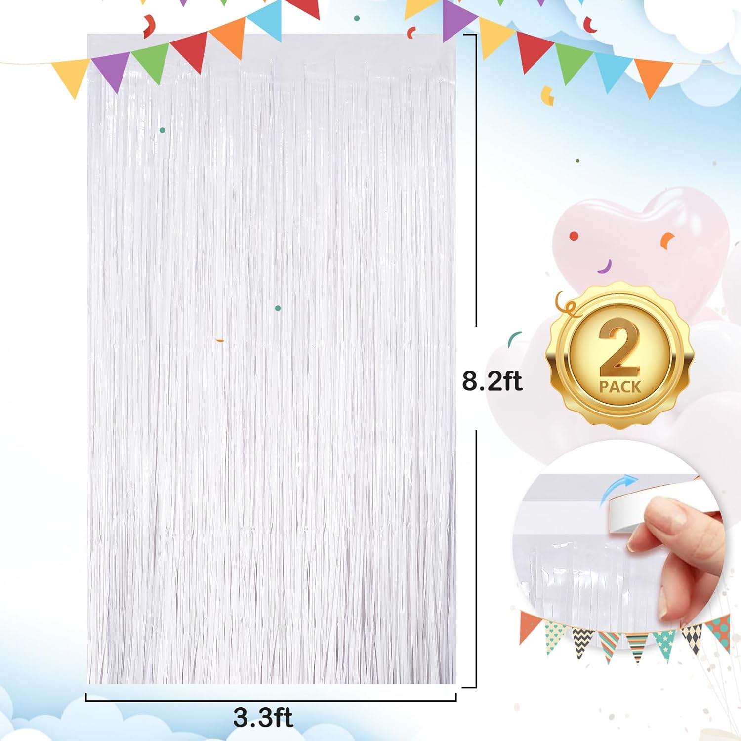 UWPVOWSR White Fringe Curtain Party Streamers 2Pack 3.3 x 8.3 Ft Foil Fringe Backdrop Curtains for Birthday Wedding Bridal Baby Shower, Holiday Tinsel Streamers White Party Decorations Door Streamers