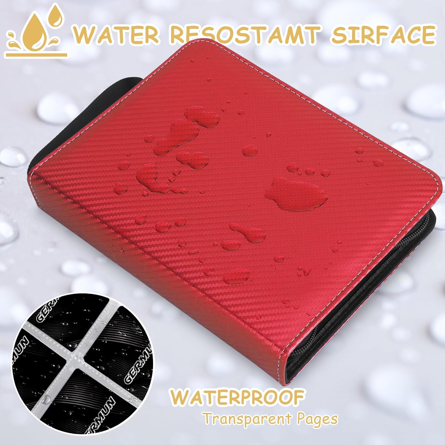 4 Pocket Card Binder, Premium Zip Trading Card Binder, 400 Double Sided Pocket PU Card Collection Binder, Collector Card Album, Card Folder for MTG, TCG, Sports Cards, Game Cards (Red)