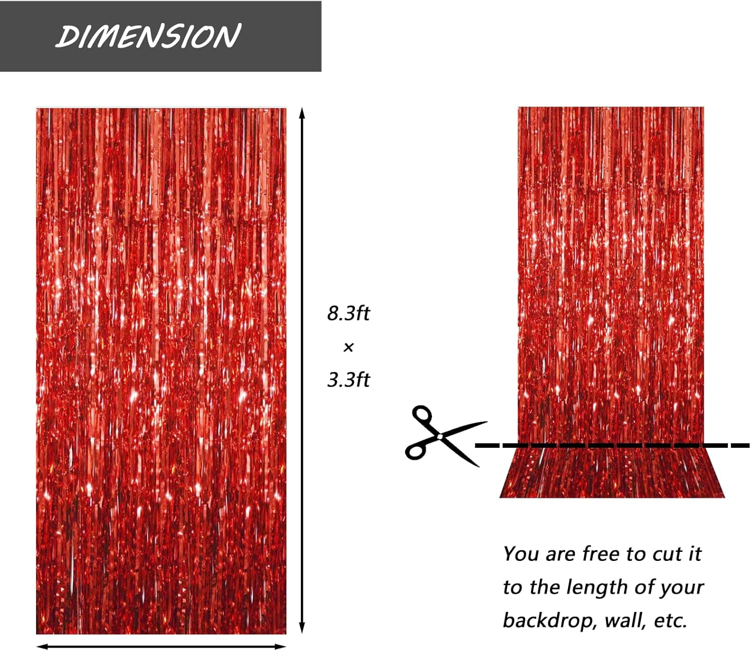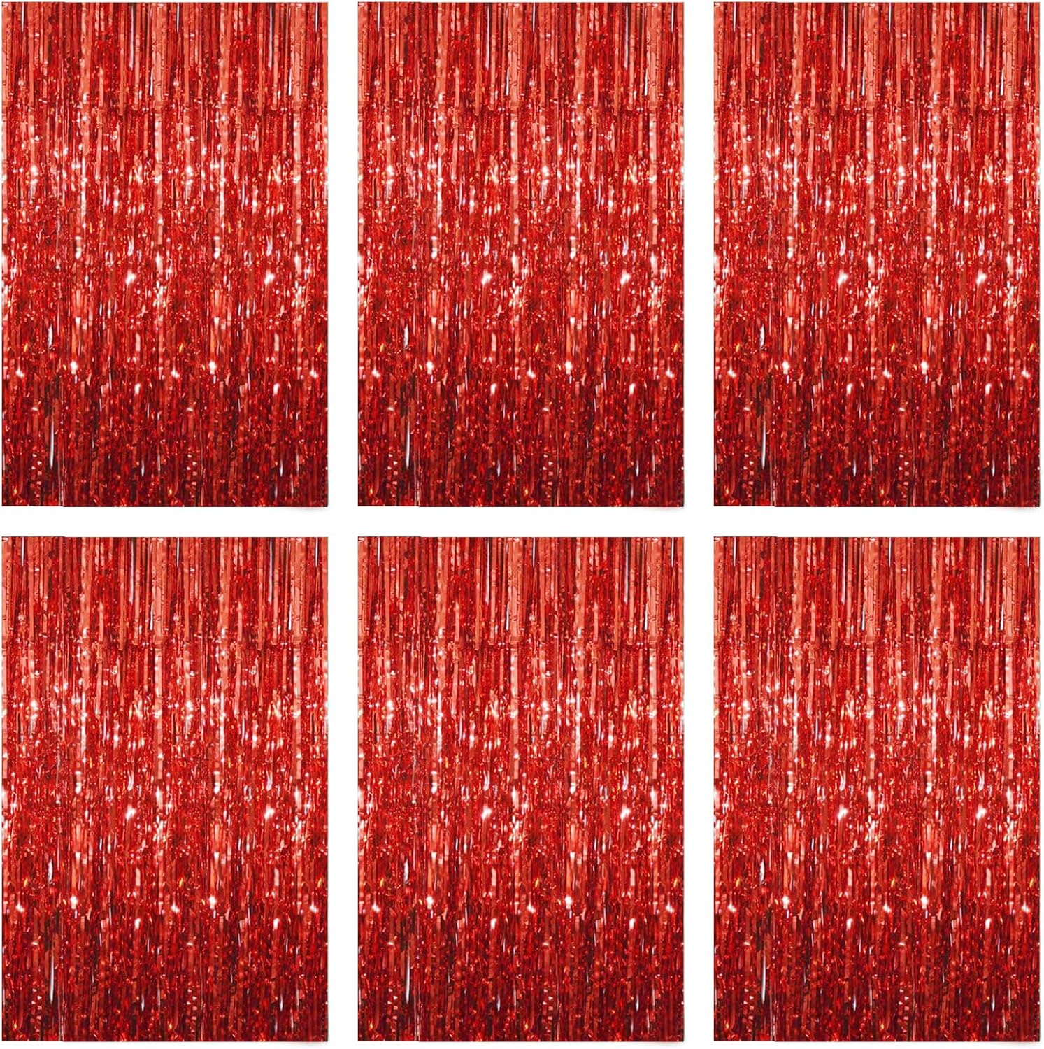 Red Foil Fringe Curtain 3.3×8.3FT 6 Packs, Metallic Tinsel Curtains Party Streamers for Birthday Graduation Baby Shower Decoration (6pcs,3.3FT×8.3FT, Red)