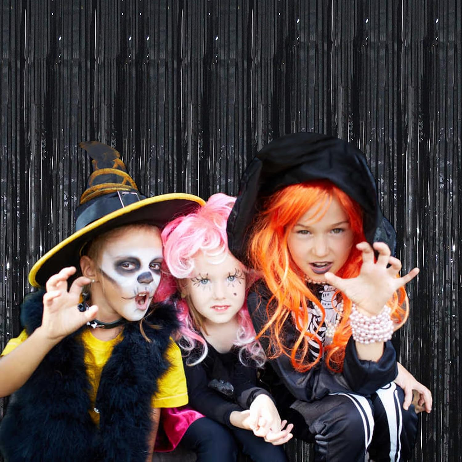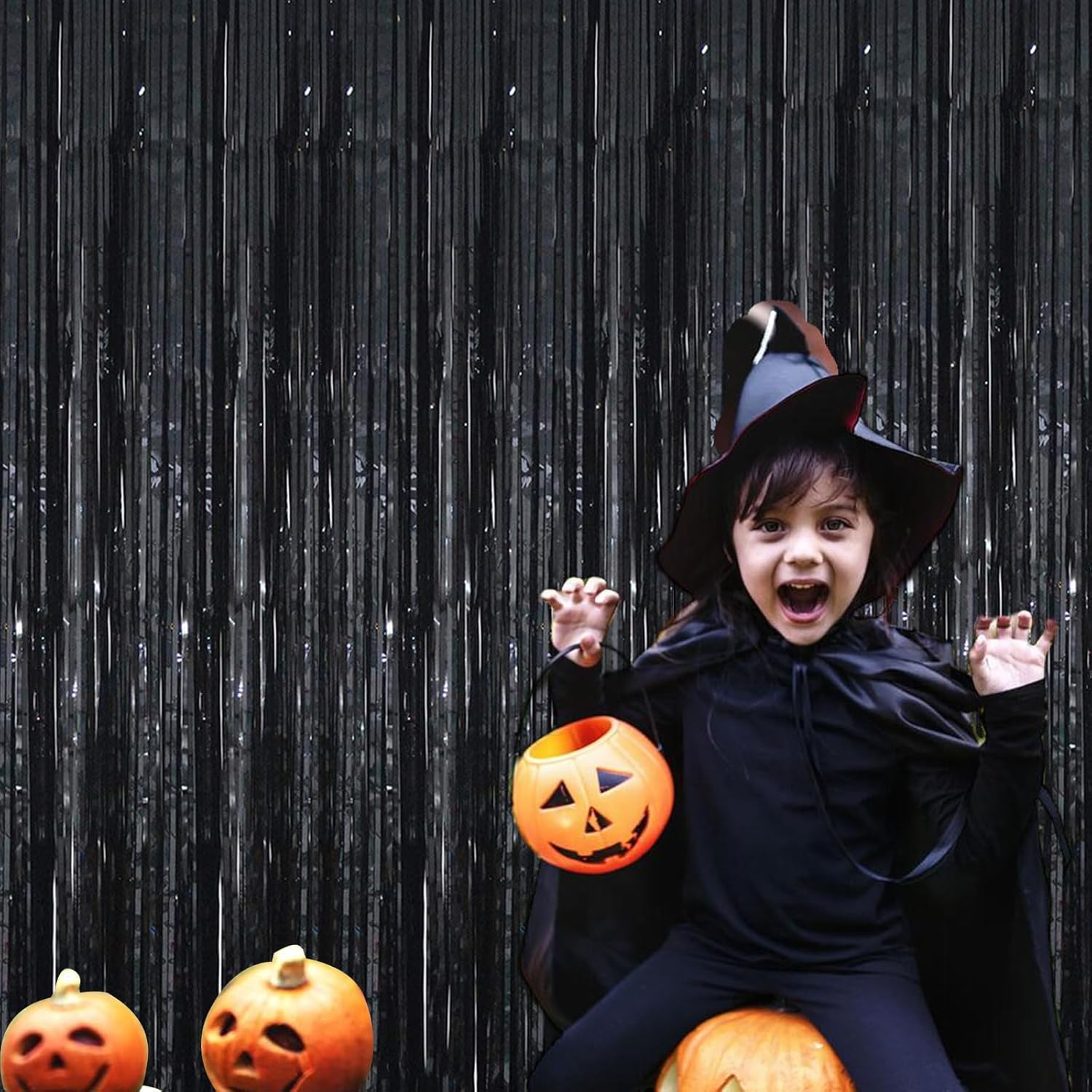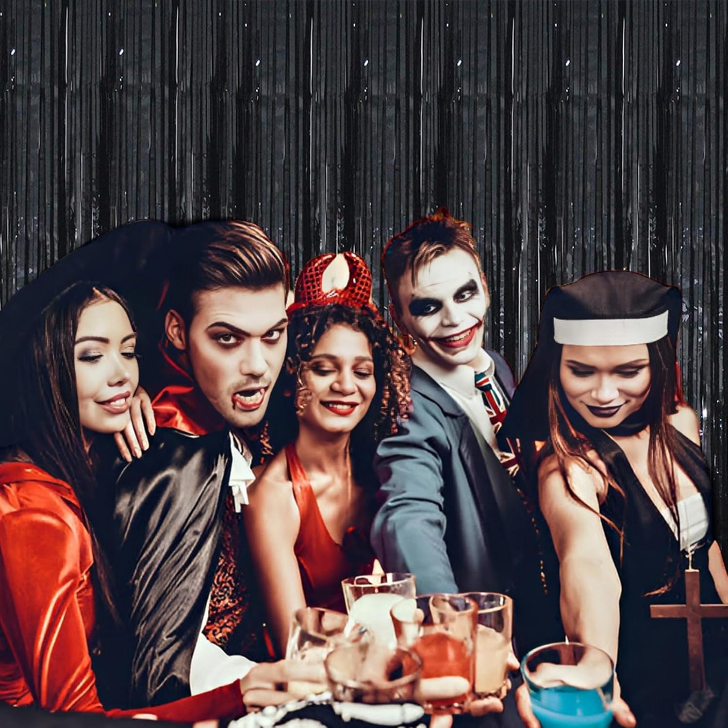 Black Foil Fringe Curtain 3.3×8.3FT 6 Packs, Metallic Tinsel Curtains Party Streamers for Birthday Graduation Baby Shower Decoration (6pcs,3.3FT×8.3FT, Black)
