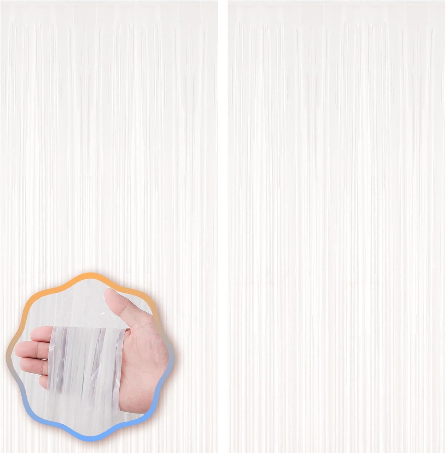 2 Pack White Foil Fringe Backdrop Curtains, Tinsel Streamers Birthday Party Decorations, Fringe Backdrop for Graduation, Baby Shower, Gender Reveal, Disco Party