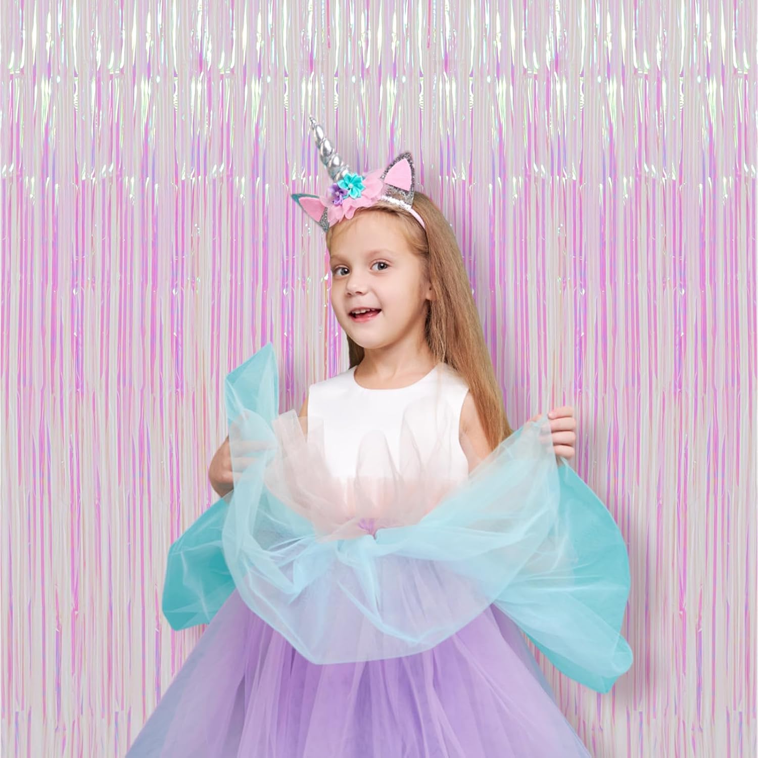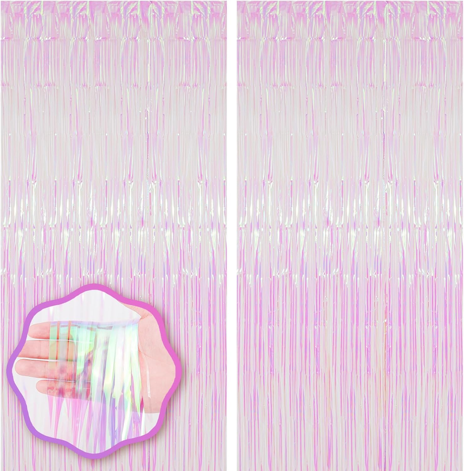 - Premium Material: This Iridescent transparent foil curtain backdrop is made of stable tinsel, non-fading, stay shiny and reusable. Unfold it and then enjoy your glittering party