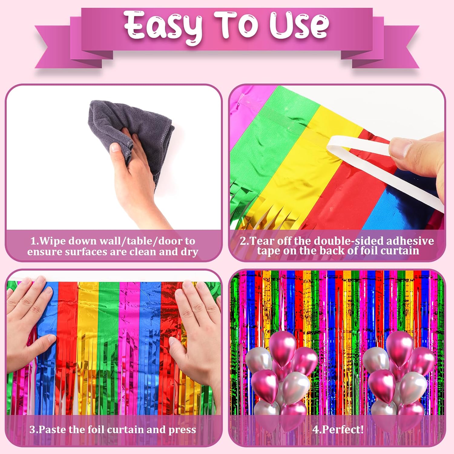 • Eye-Catching Design: These tinsel backdrops boast vibrant colors and a shimmering effect that reflects light beautifully. Your friends will be mesmerized by the captivating atmosphere these curtains create