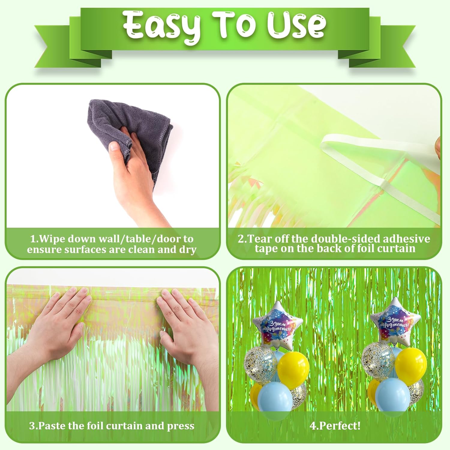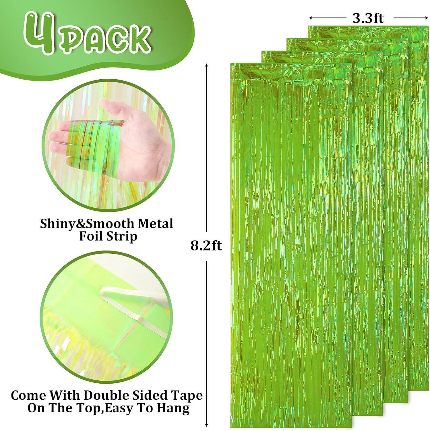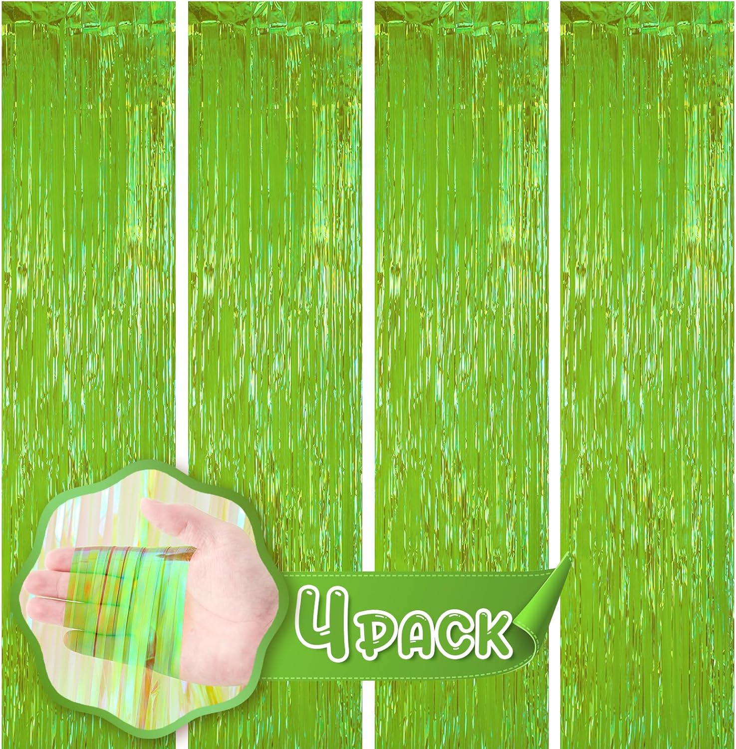 4 Pack 3.3x8.2 Feet Neon Green Foil Fringe Backdrop Curtains, Tinsel Streamers Birthday Party Decorations, Fringe Backdrop for Graduation, Baby Shower, Gender Reveal, Disco Party