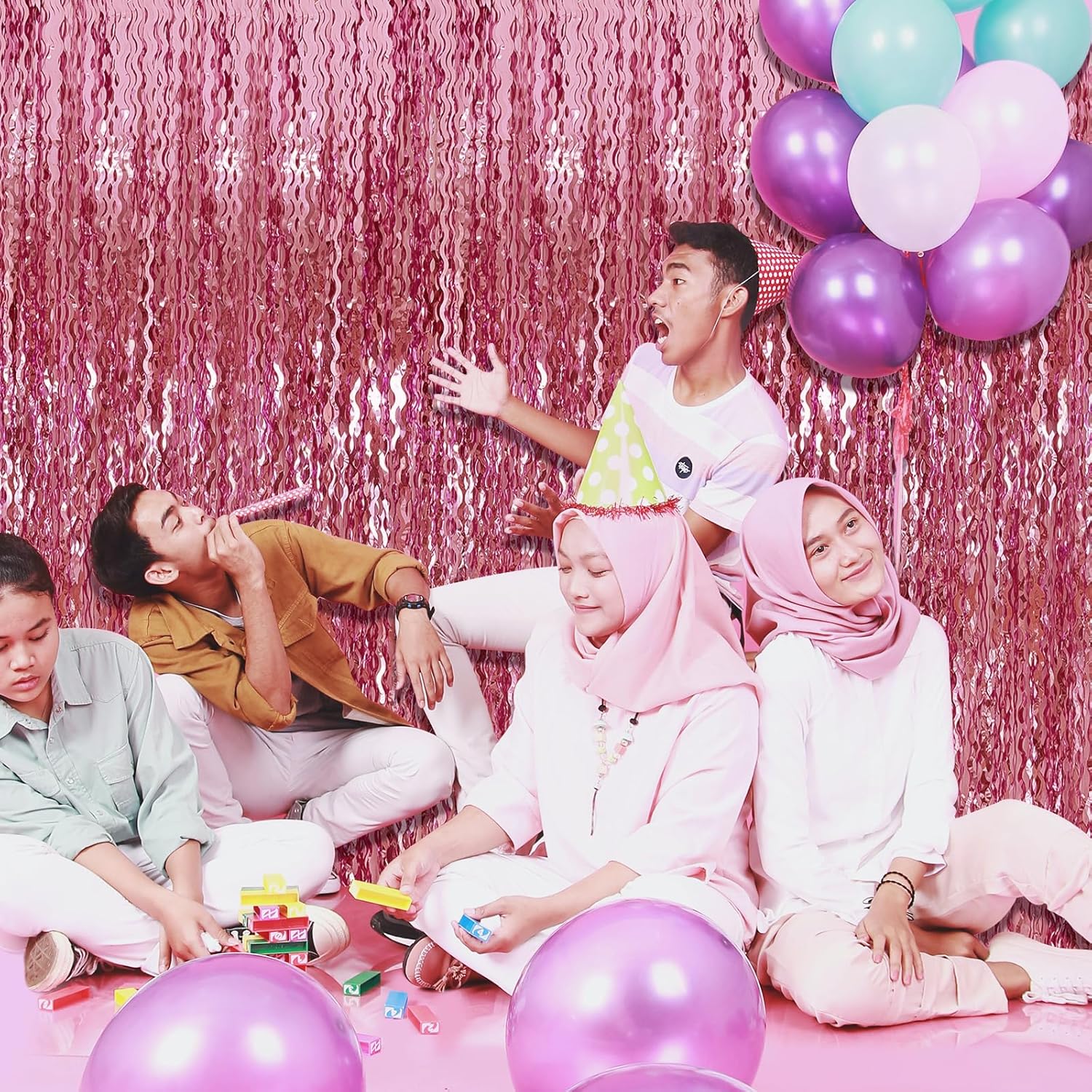 - Pink Photo Backdrop - The wavy foil fringe curtains with sparkle, a stunning decorative piece that will add a touch of glamour and elegance to your party decorations.