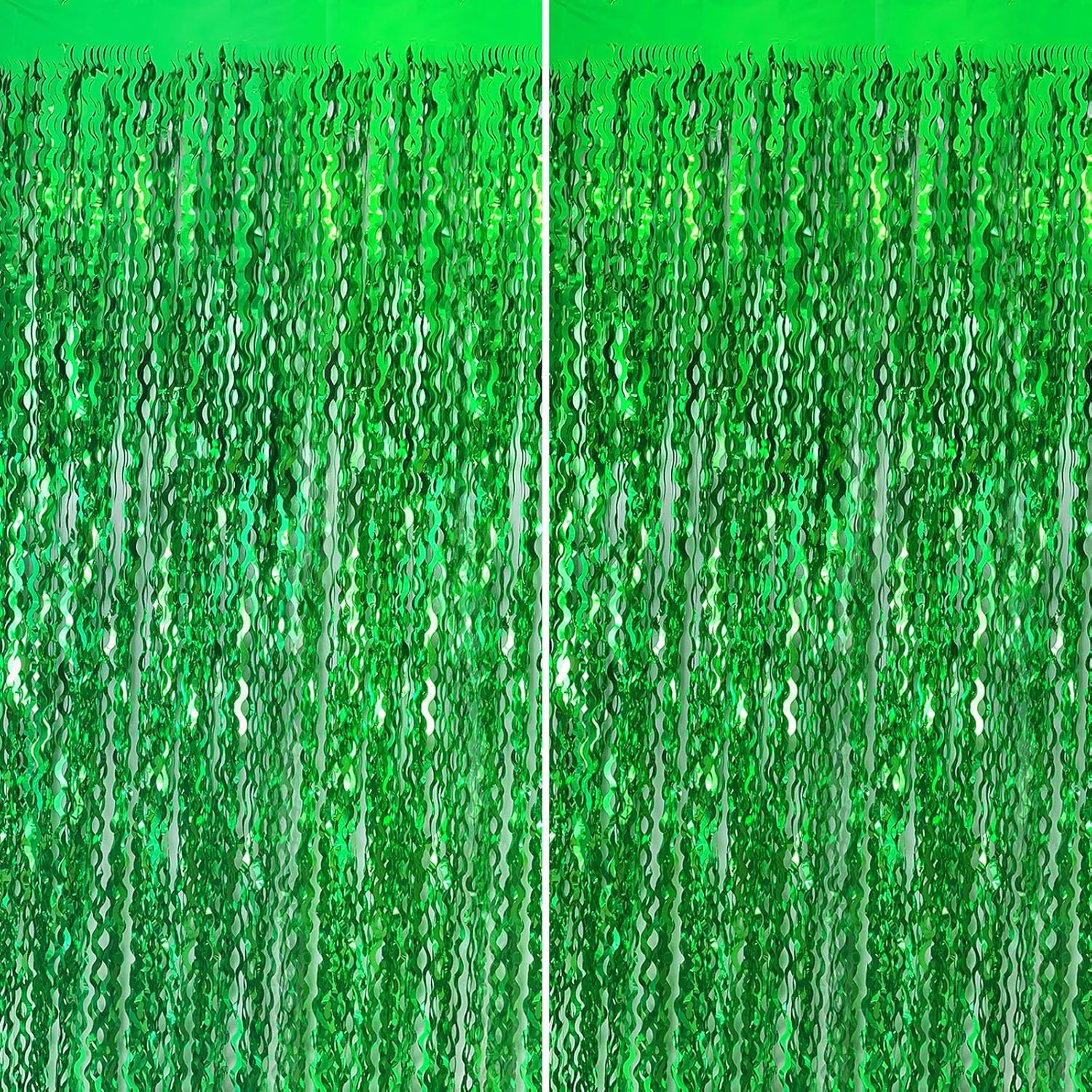 - Green Photo Backdrop - The wavy foil fringe curtain with sparkle, a stunning decorative piece that will add a touch of glamour and elegance to your party decorations.