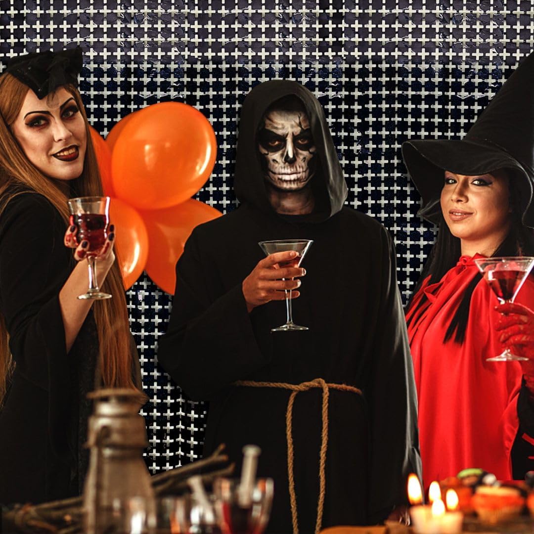 Square Tinsel Curtain Party Backdrop - 10pcs Glitter Foil Fringe Curtain Party Decor Black Photo Booth Backdrop Streamers for Halloween, Christmas, Birthday, Graduation, Wedding Party Decorations