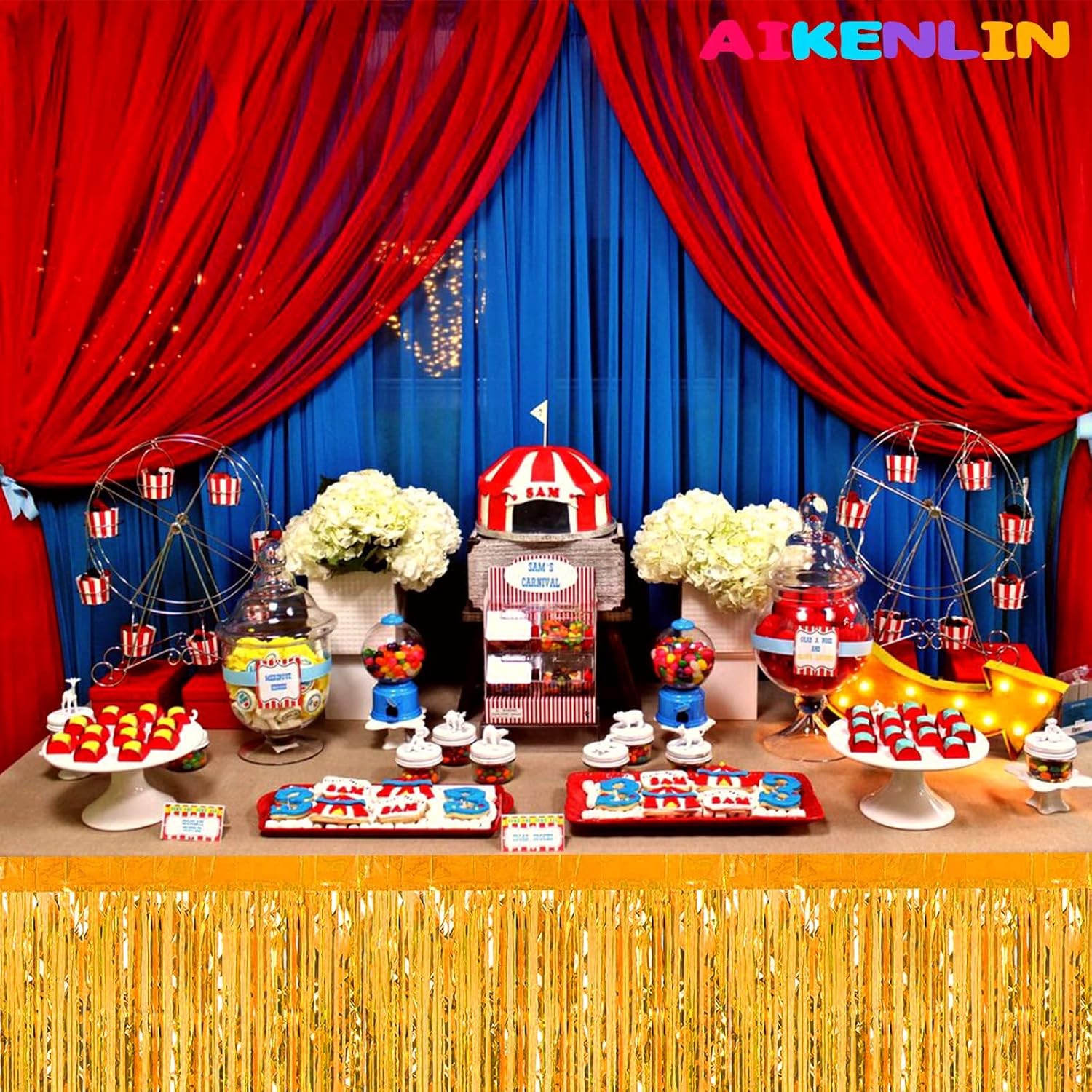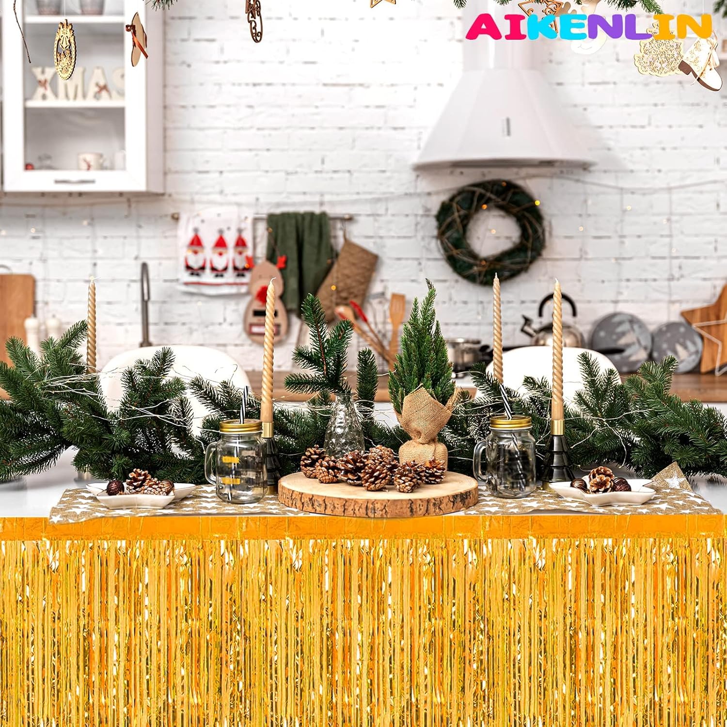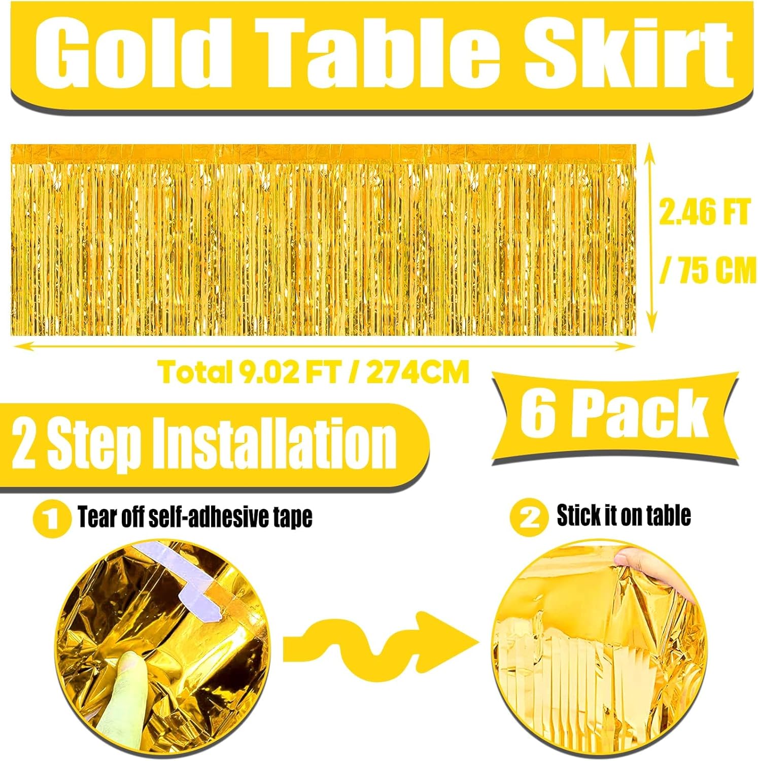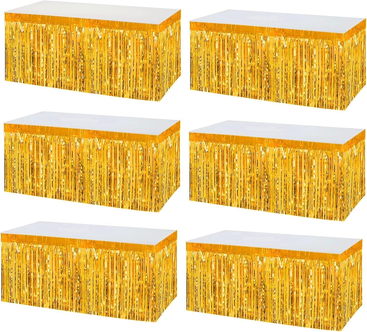 - 【Package Includes】6pcs/set metallic fringe table skirts / shiny tassel banner, beautiful and shiny, provide you with great decoration effects, Each pack of table skirt measures 29x108 inches. Each one will be 9 Ft long, 6 pack will cover 54 FT length of tables.