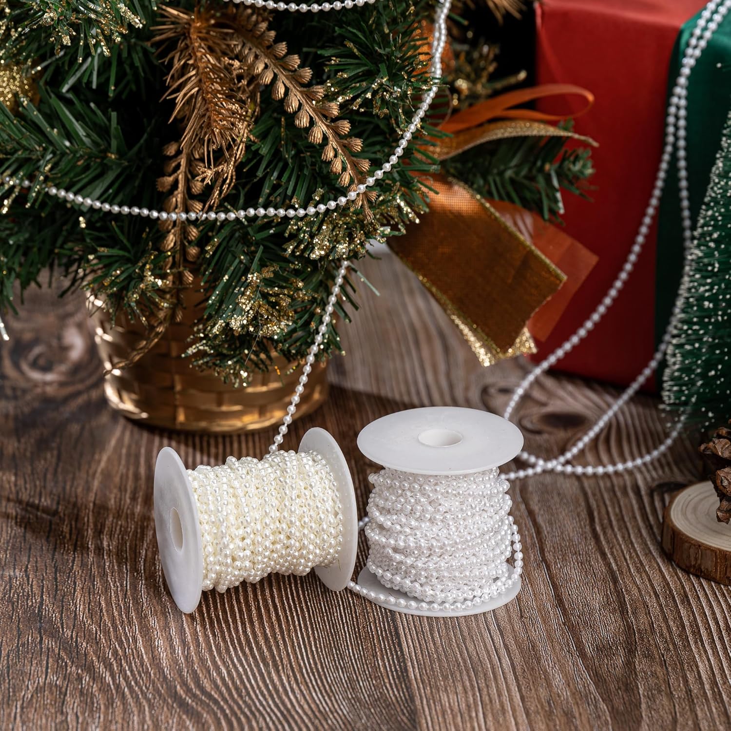 3mm Millet Beads Crafts Faux Pearl Beads Garland Pearl Bead Roll Strand of Pearls to Decorate Floral Centerpieces Wedding Party Favor Christmas Tree(33 Feet Ivory)