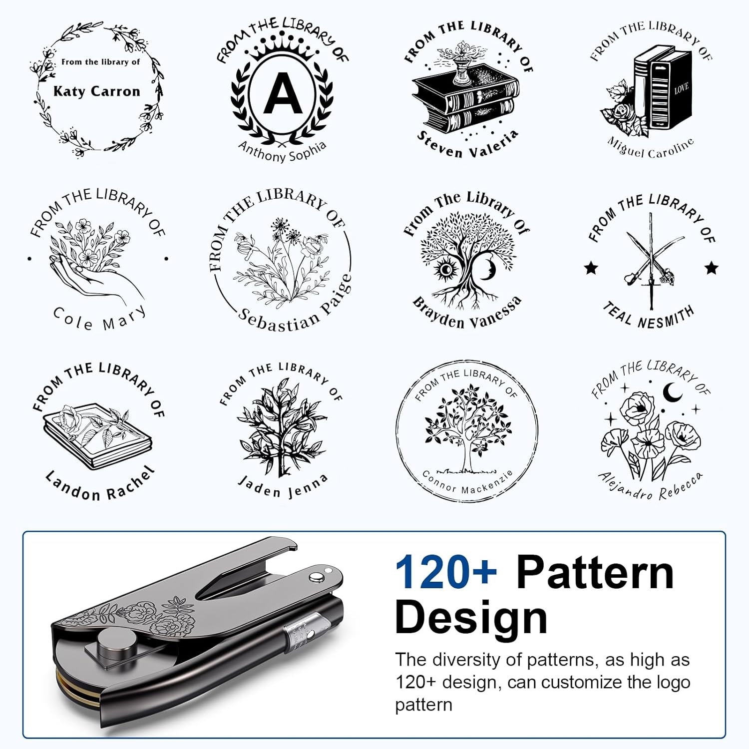 - Custom Book Embosser: To customized your book stamps, simply enter your text in the customization options, select or transfer your logo, and we do the rest.