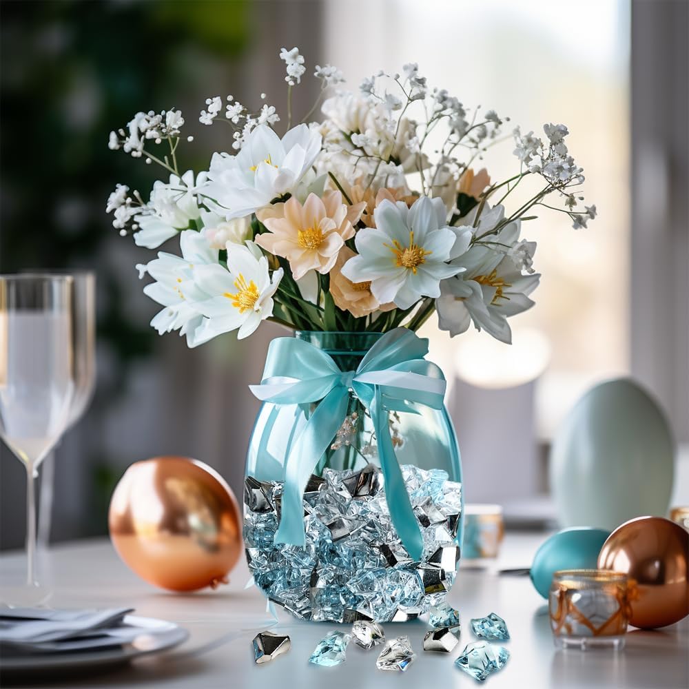 - Vase Filler: These plastic ice rocks are made of high quality material, you can add these gems to the glass bottle as filler or with flower for floral decoration.Make your home look more sparkling.