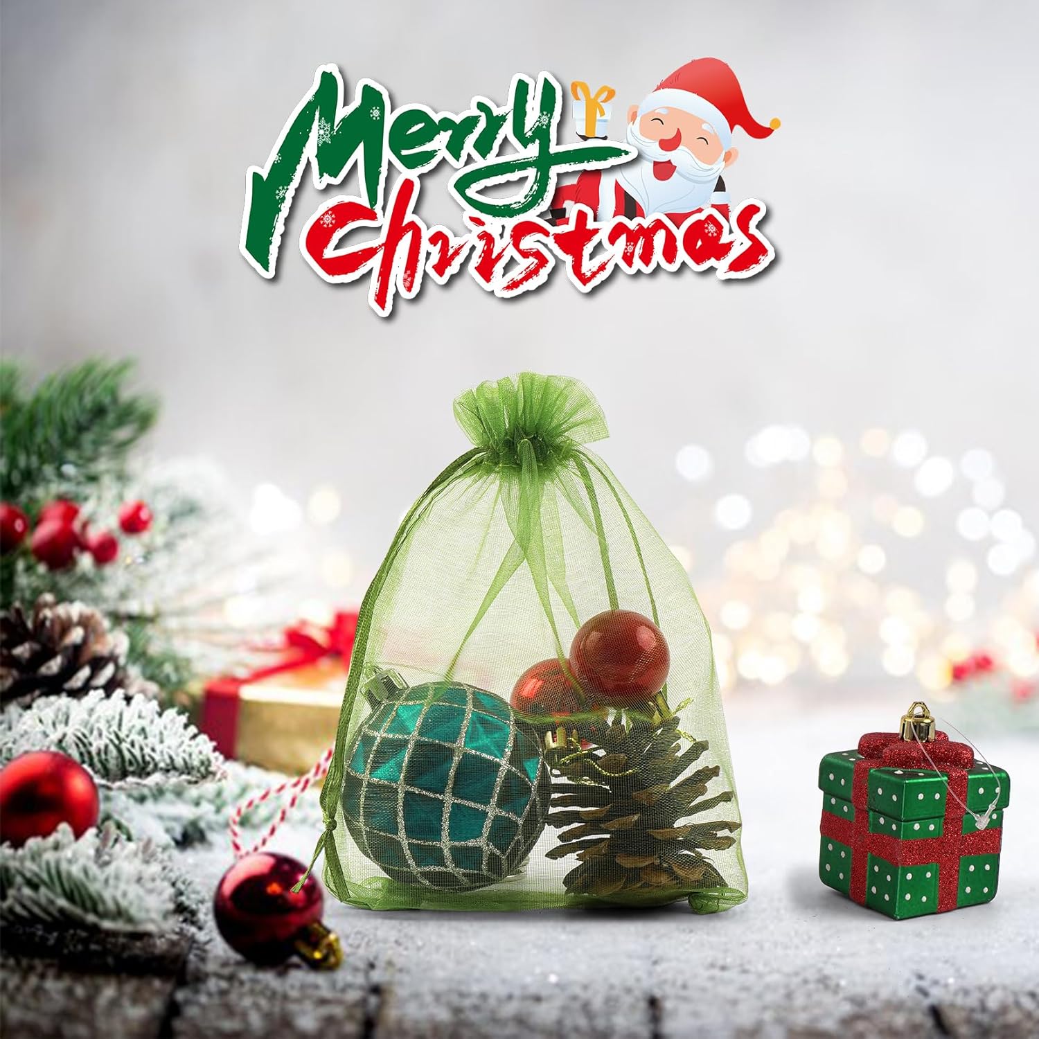ANZNKU 50 Pack Organza Bags 4 x 6 inch Premium Sheer Drawstring Small Mesh Bag for Candy Jewelry Party Wedding Christmas Favor Gift Bag (Green)