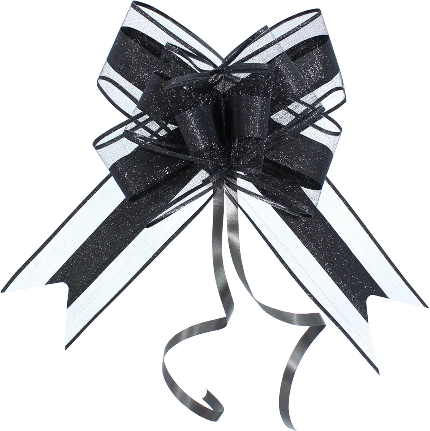 - Package: Each package include 10 large black bows, and their assembled diameter is 8 inch. Our gift wrap bows are made of high quality pearlized glitter material. It will shining under the light and look elegant and glamorous