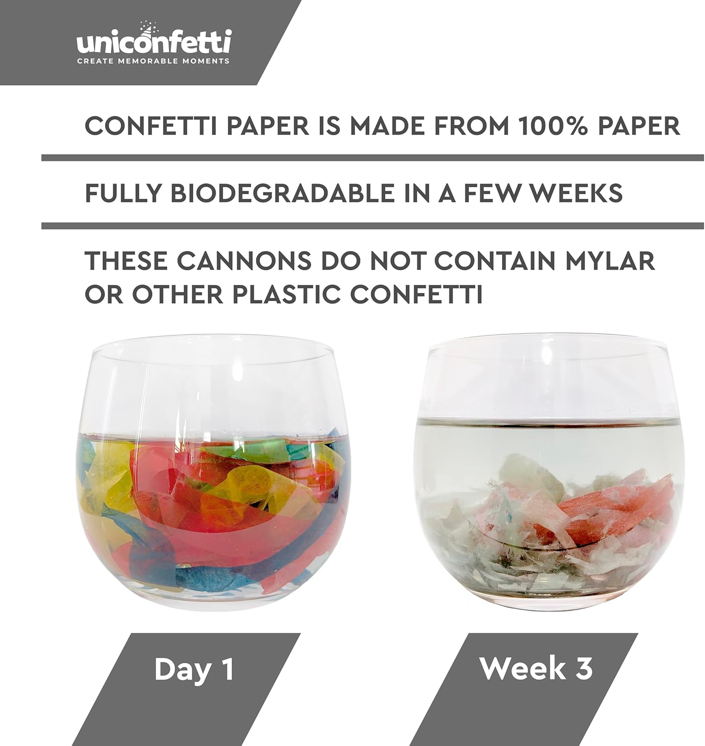 - π QUICK TO CLEAN - No Mess Streamer Poppers. Take seconds to clean compare to the small pieces of confetti papers.