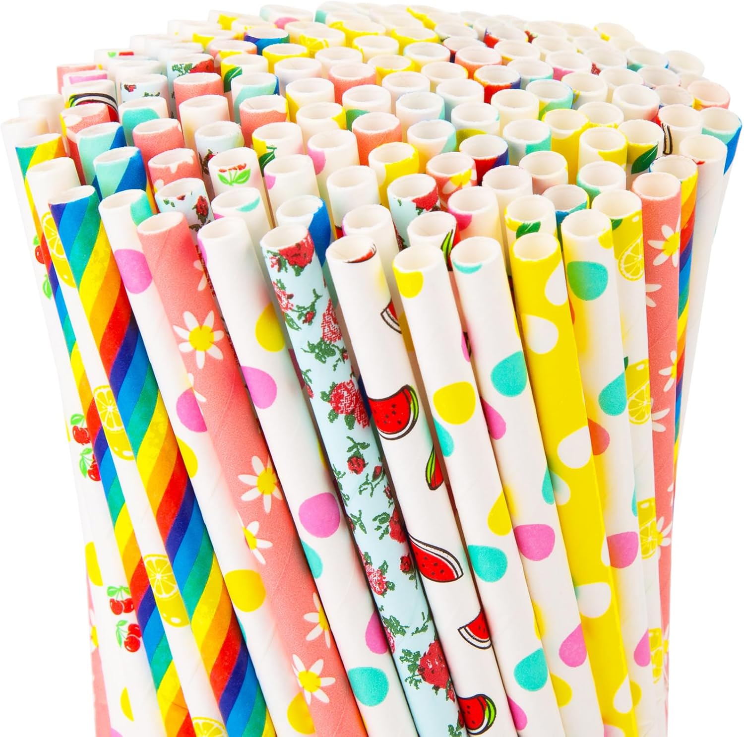 - Premium Value Set: This set includes 180 paper straws in 9 different patterns, each measuring 0.24 inches in diameter and 7.8 inches in length. Designed to fit most beverage cups and containers, these straws are cut flat and smooth and come in equal lengths. The straws are beautifully printed with vibrant, long-lasting colors. Perfect for family and friends parties, you can mix and match as many colors as you like