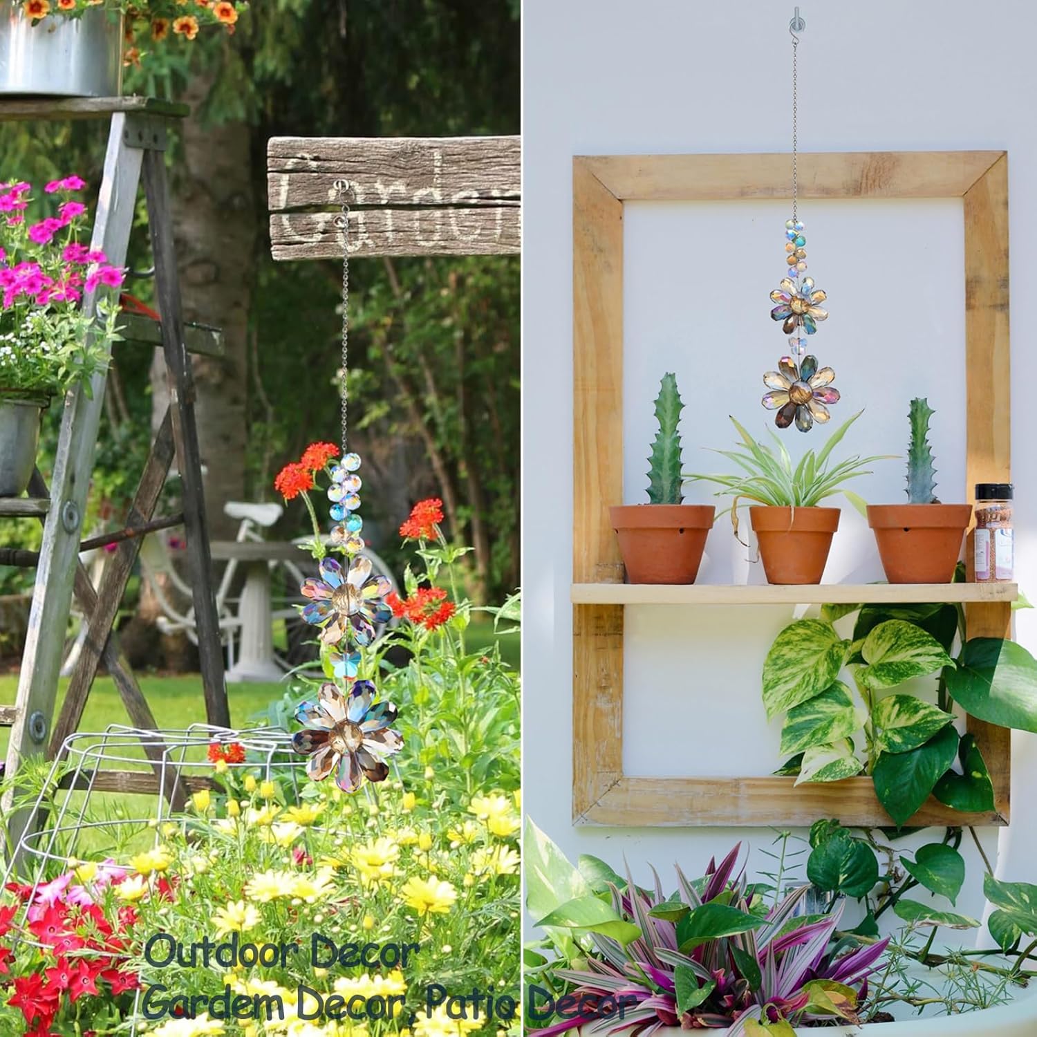 Crystal Flower Suncatcher Hanging Ornament, Rainbow Maker Window Sun Catcher Indoor Outdoor Patio Garden Decor (Deep Multicolor)