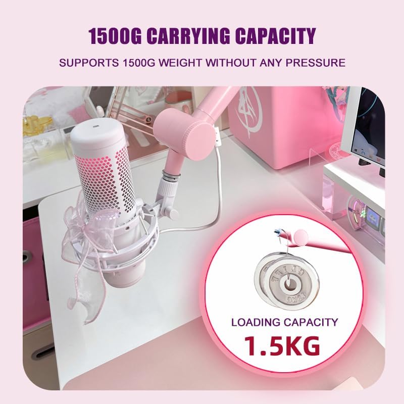 - Heavy Duty Microphone Stand - Made of strong steel, double support arms bear more weight for strength, super strong springs prevent the microphone from accidentally dropping, making noise and shaking, can hold up to 3.5 lbs. It has a strong C-clamp that attaches to the edge of your desk and won't move or shift during use. .