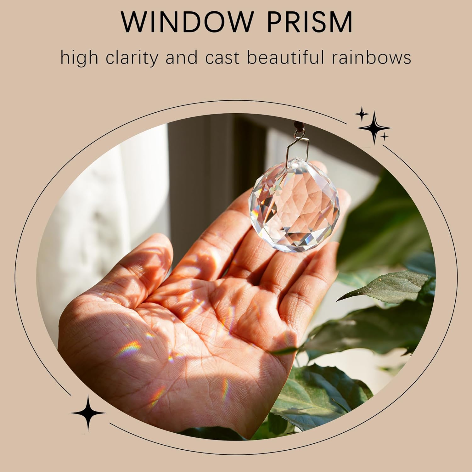 - Rainbow Maker: Crystal Prism ball is finely crafted, could turn the sun's rays into many rainbows.Faceted Crystals Prism ball makes the most beautiful color, throws rainbows all around the room when hang in a window, Brilliant in the Sun. Suitable for indoor use