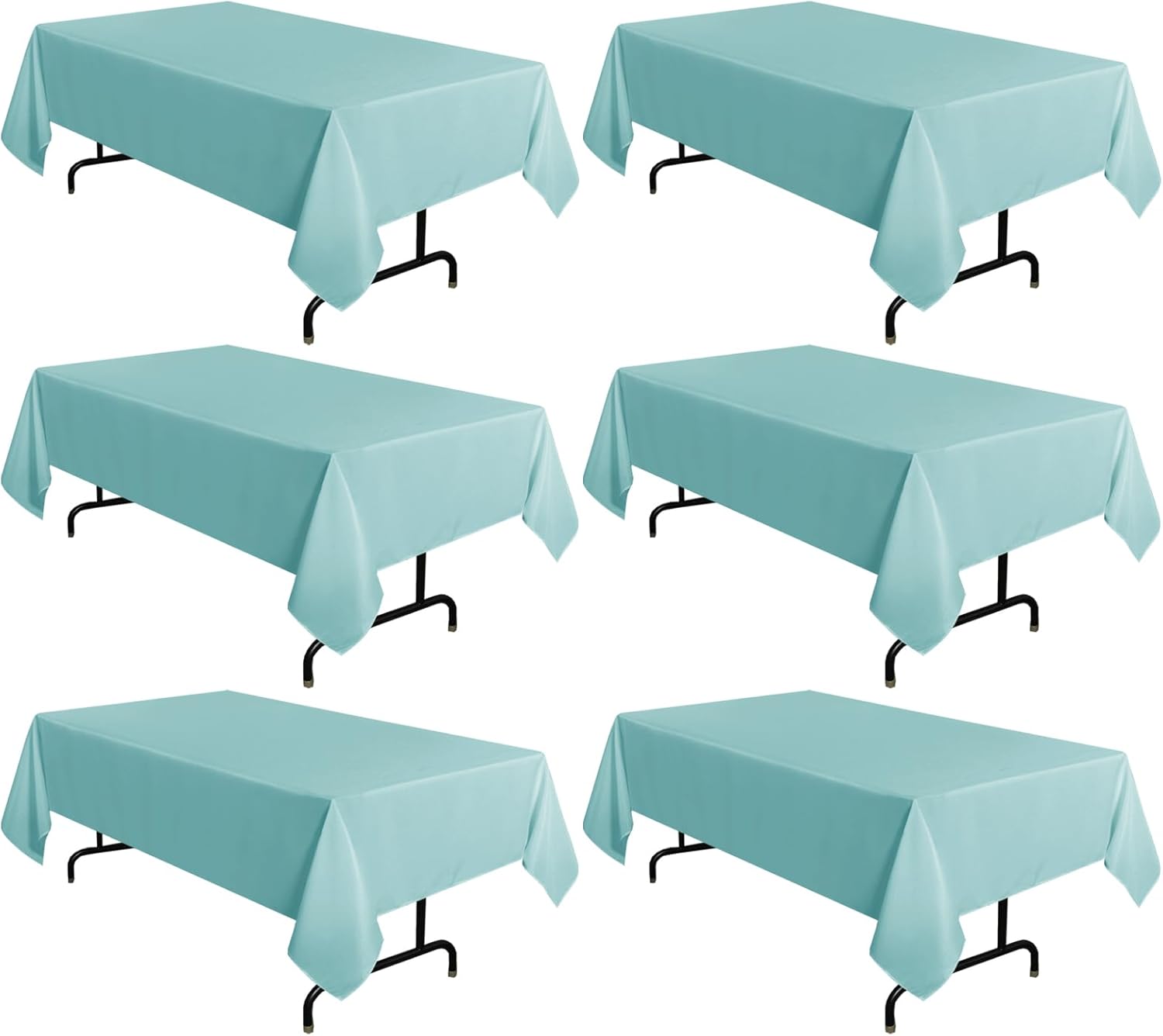 sancua 6 Pack Turquoise Tablecloth 60 x 102 Inch, Rectangle Table Cloth for 6 Feet Tables - Stain and Wrinkle Resistant Washable Polyester Table Cover for Dining Tables, Buffet Parties and Camping