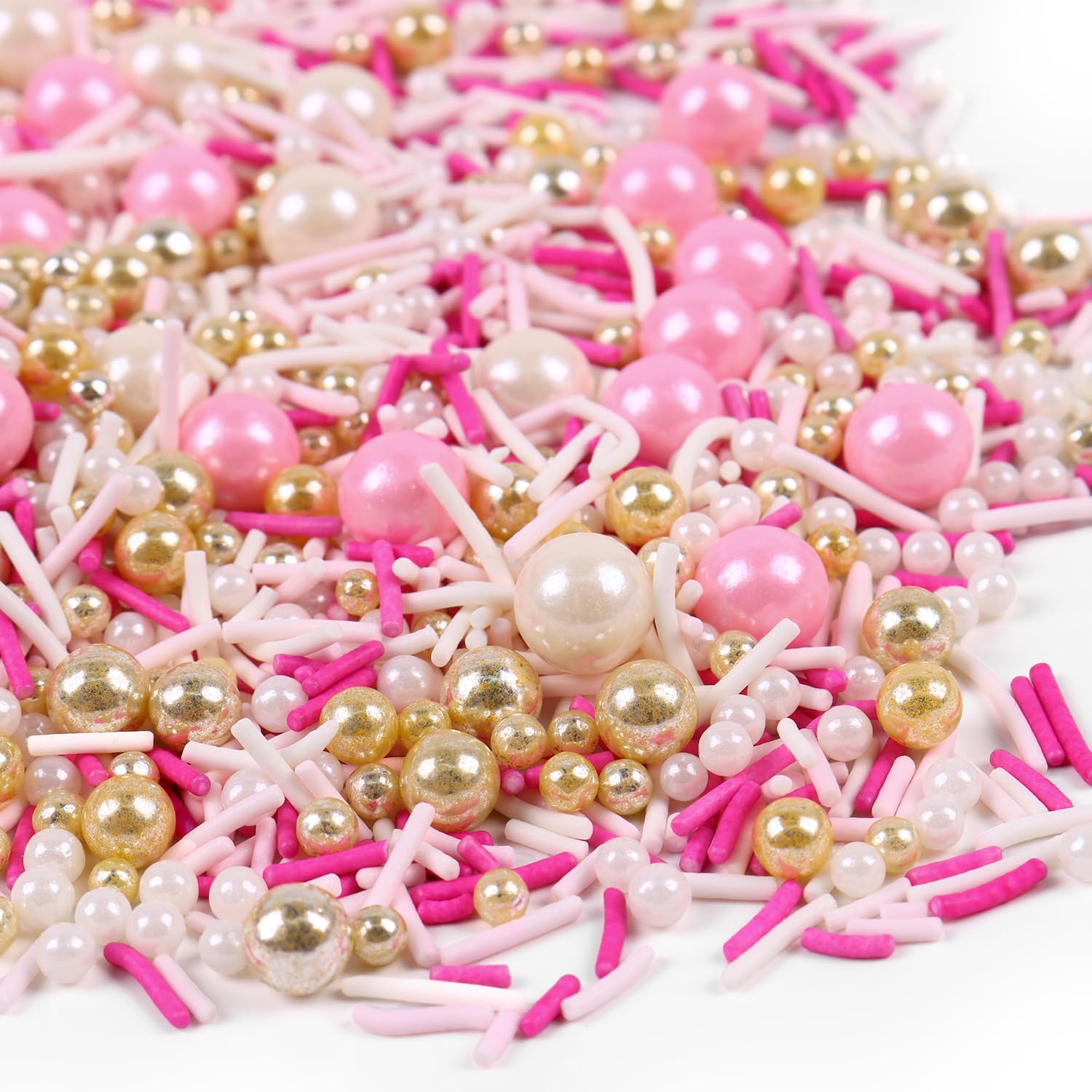 Valentine Pink sprinkles for Cake Decorating Edible Sprinkles for Cookies Ice Cream Cupcake Topper 7 ounce Metallic Sprinkle Mix Perfect for Wedding New Year’S Eve Party