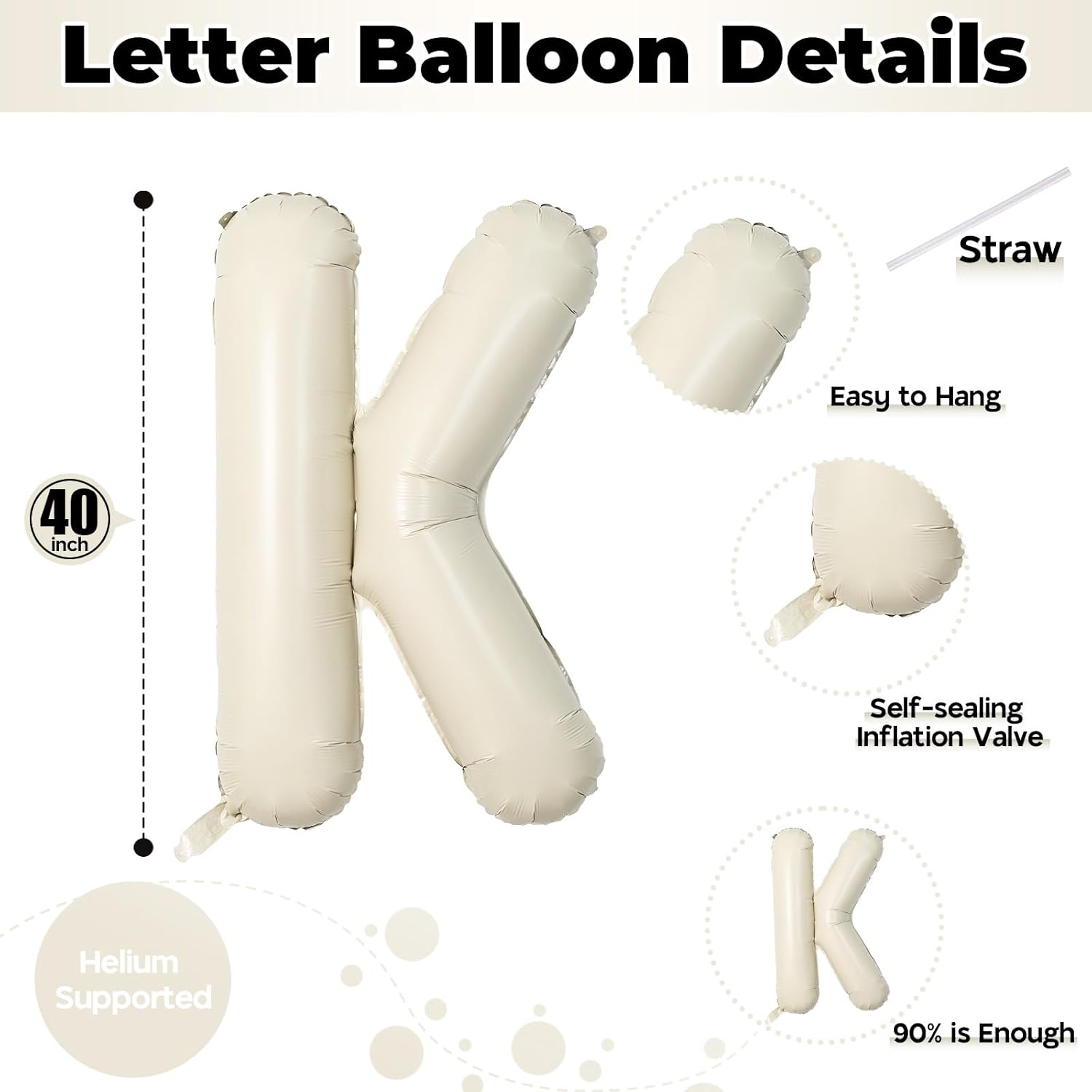 - π What You Get: Our product package includes 1pcs 40 inch "K" letter foil cream white balloon and 1pcs convenient straw for inflate. You can choose any big letter balloons to combine and customize the word you want to form. Make your party more unique and meaningful.