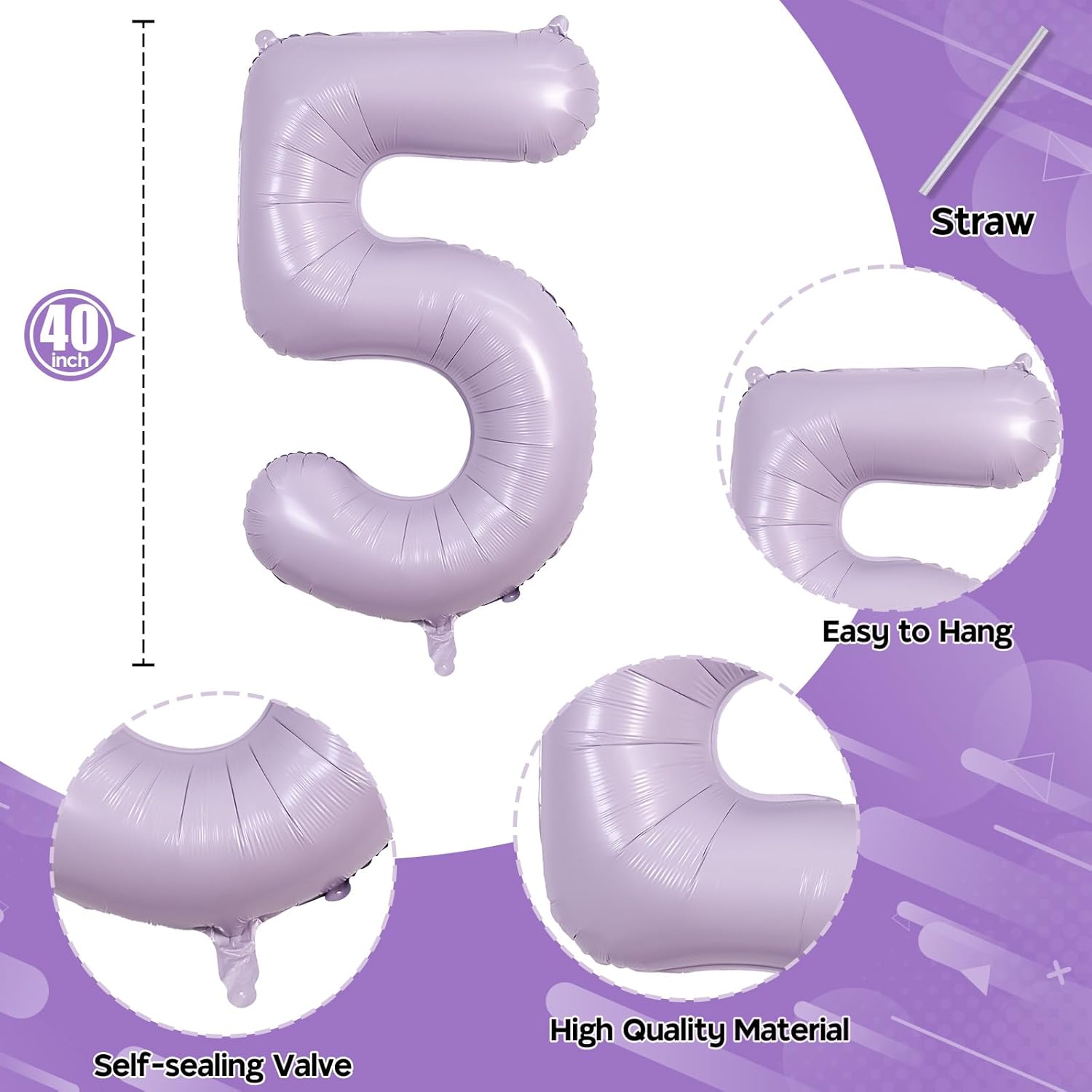 - π Pastel Purple Number 15 Balloon Set π - You will get 2pcs 40 inch light purple mylar foil number balloons (number 1 + number 5) and 1pc straw. Perfect for decorating girls 15th or 51st birthday party.