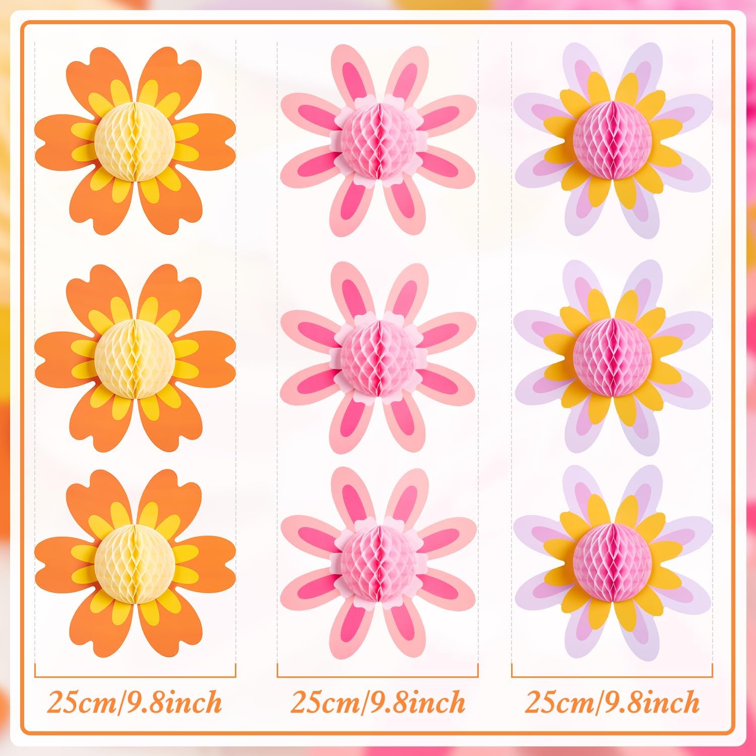 SUNBEAUTY 9 PCS 10 Inches Daisy Birthday Party Decorations - Groovy Flower Spring Sun Retro Hippie Baby Shower Decor