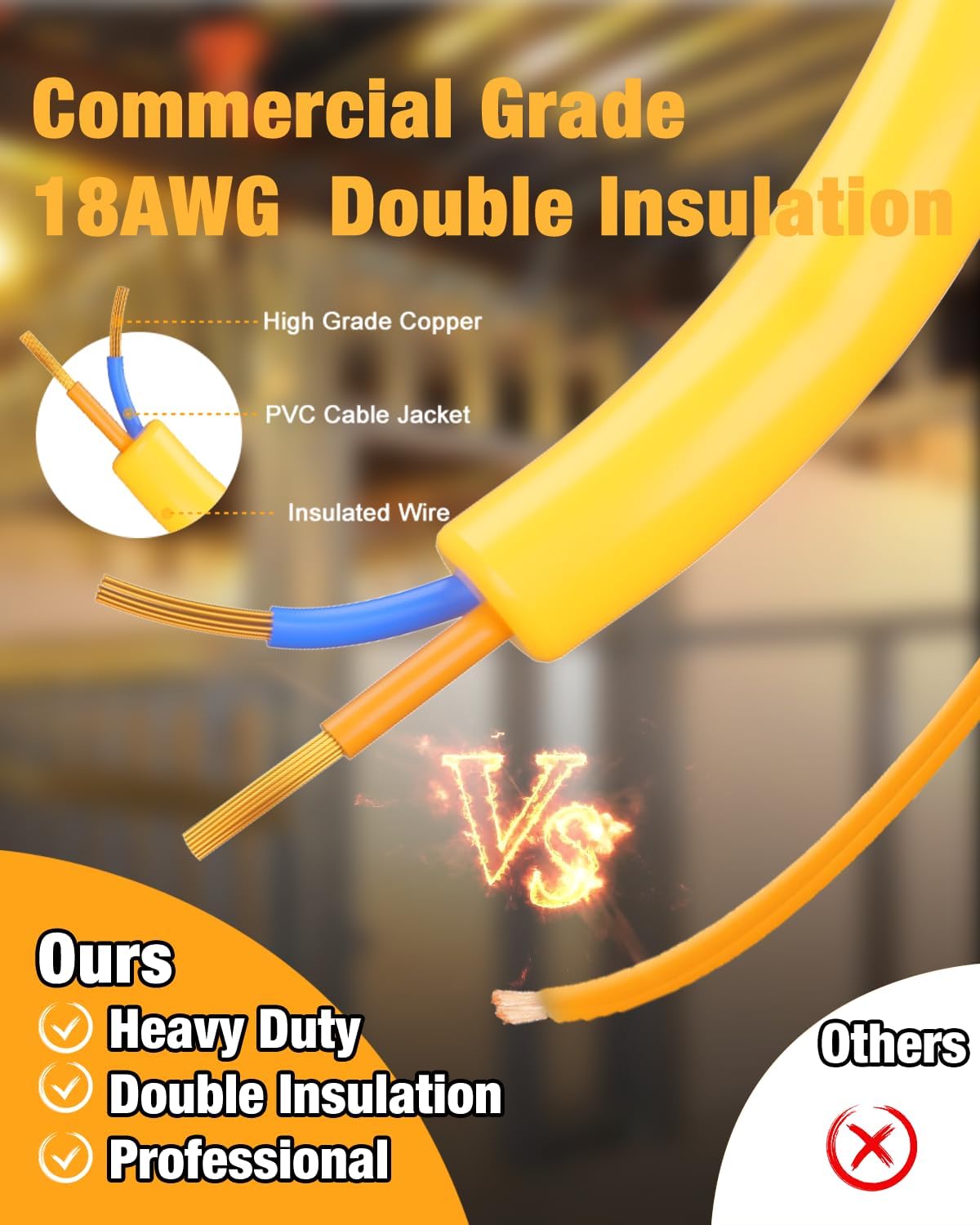 - 【Industrial Grade】Adopts SJTW 2/18 AWG heavy-duty wire and high-precision oxygen-free tinned copper material for lower resistance and higher conductivity. IP65 waterproof tech can withstand extreme weather conditions and IK08 protection is enough to withstand shocks and vibrations, no need traditional cage and worry about bulb aging and damage. Sturdy and durable structure enhances the service life of the work light up to 50,000 hours.