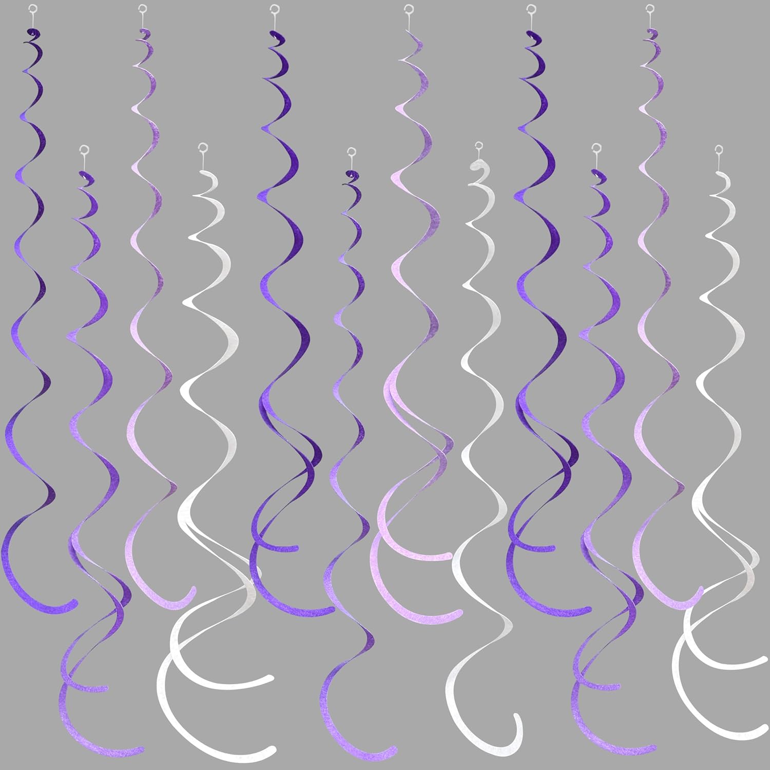 - 💜Package Contains - 36 packs of ombre purple color swirl party streamer,Each swirl can extends to approximately about 2.62 feet long,Meeting daily general needs.Comes with 40 plastic hooks for hanging.
