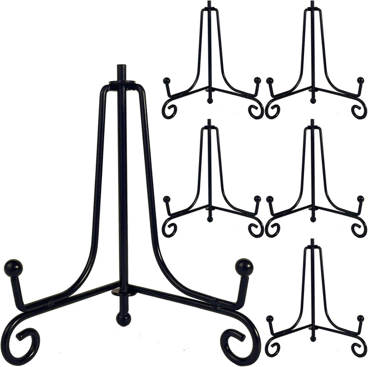 6PCS Premium Black Iron Plate Stands for Display 4 Inch, Decorative Solid Metal Plate Holders for Displaying, Mini Easel, Frame, Book, Card, Plaque, Bowl, Picture Stands for Display