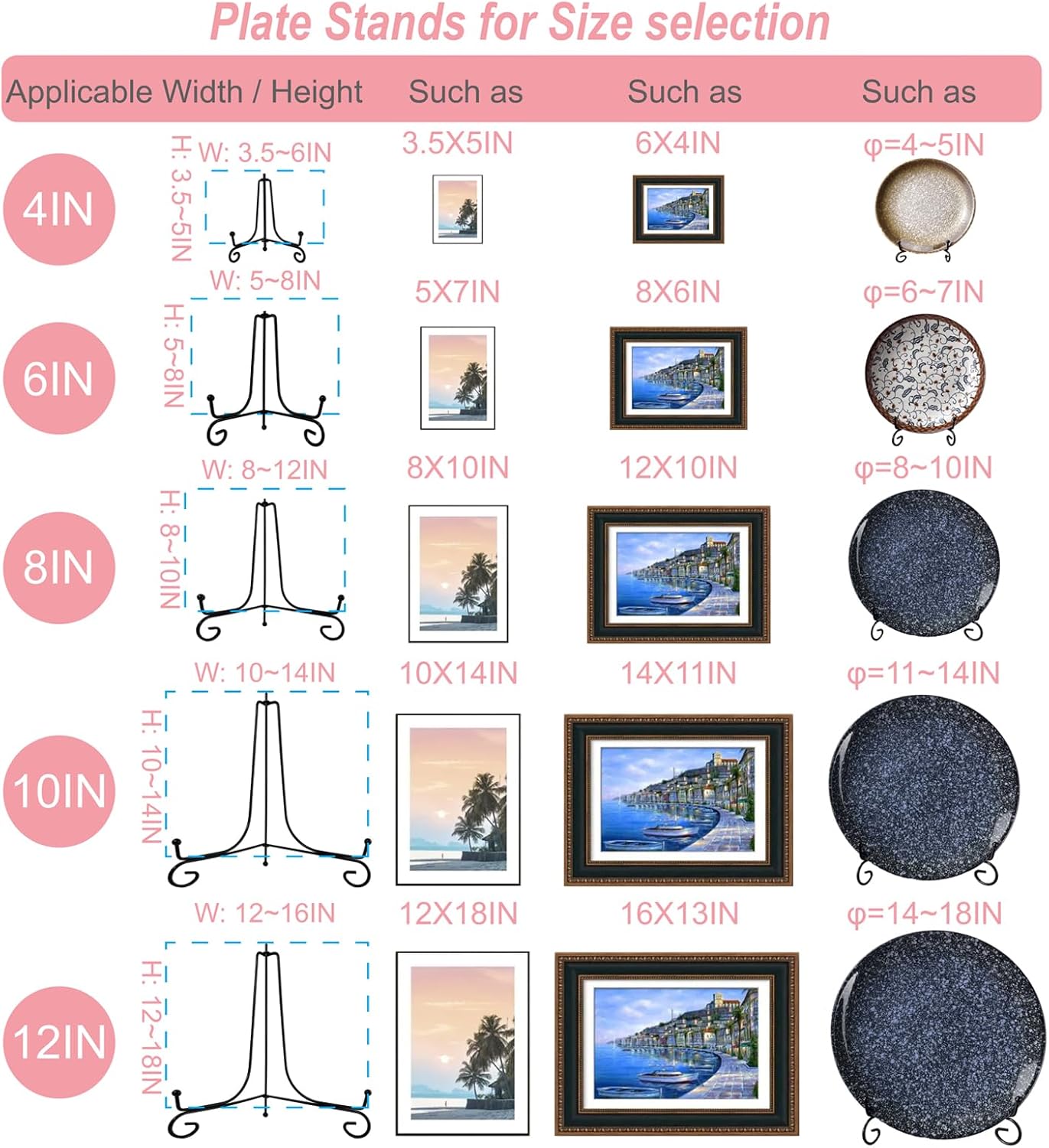 - Choose The Right Size: 4 Inch plate display stands are suitable for items of Rectangle 3.5 - 5 Inch Height / Wide and Round Ο=4 - 5 IN Diameter. Plate holders for displaying are made of solid metal wire and black spray paint resistant to corrosion
