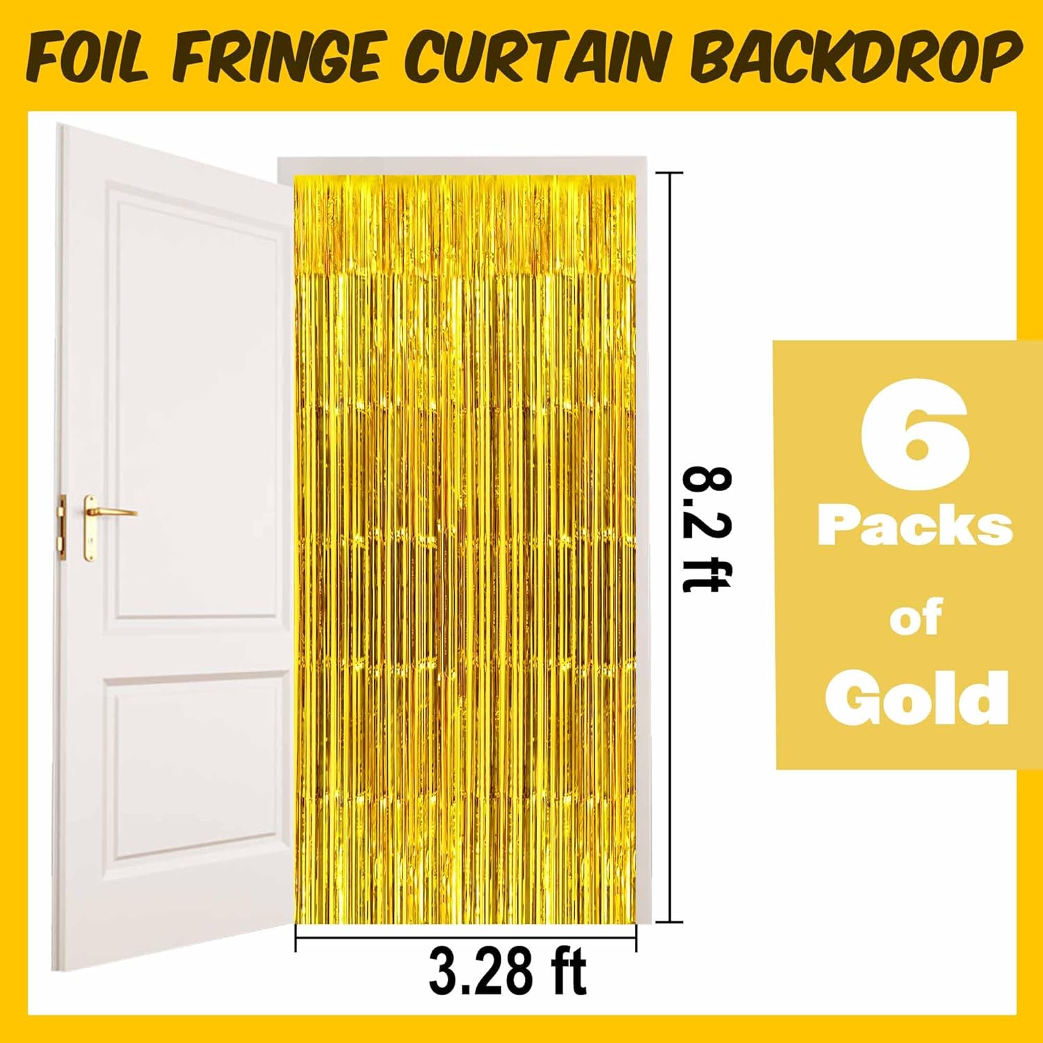 6 Pack Gold Foil Fringe Curtains Backdrop, 3.28 x 8.2 Ft Metallic Streamers Tinsel Curtains Background for Photo Booth, Birthday, Weddings, Carnivals, Graduation, Themed Party Decorations