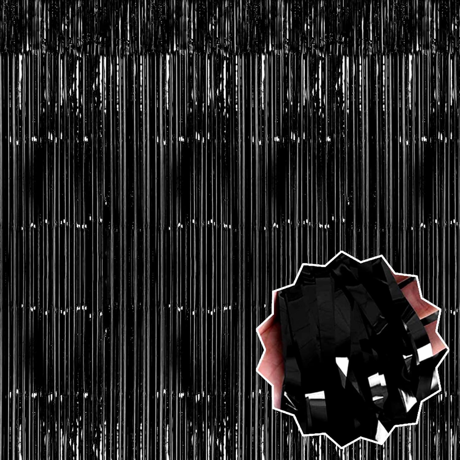 6 Pack Black Foil Fringe Curtains Backdrop, 3.28 x 8.2 Ft Metallic Streamers Tinsel Curtains Background for Photo Booth, Birthday, Weddings, Carnivals, Graduation, Themed Party Decorations