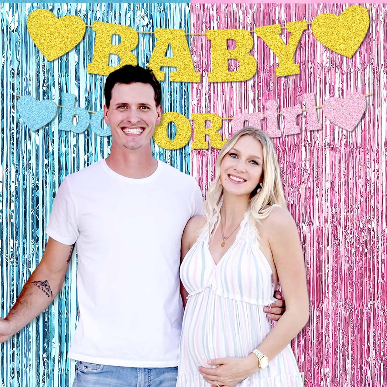 6 Pack Pink Blue Foil Fringe Curtains Backdrop, 3.28 x 8.2 Ft Metallic Streamers Tinsel Curtains Background for Photo Booth, Birthday, Weddings, Carnivals, Graduation, Themed Party Decorations