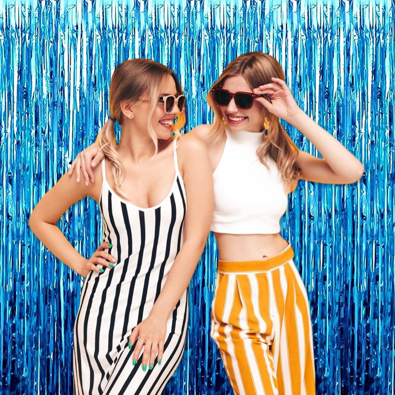 - Package and size: 6 Packs Foil Fringe Streamers Curtain Backdrop. The size is 3.28 x 8.2 feet. It's long, enough to fit any party occasion. Made of metallic foil material, shiny and creating dazzling effects, adding luxury and visual impact to the party