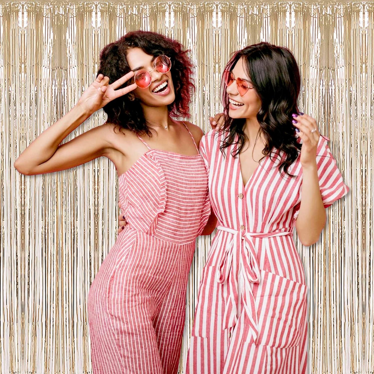6 Pack Champagne Gold Foil Fringe Curtains Backdrop, 3.28 x 8.2 Ft Metallic Streamers Tinsel Curtains Background for Photo Booth, Birthday, Weddings, Carnivals, Graduation, Themed Party Decorations