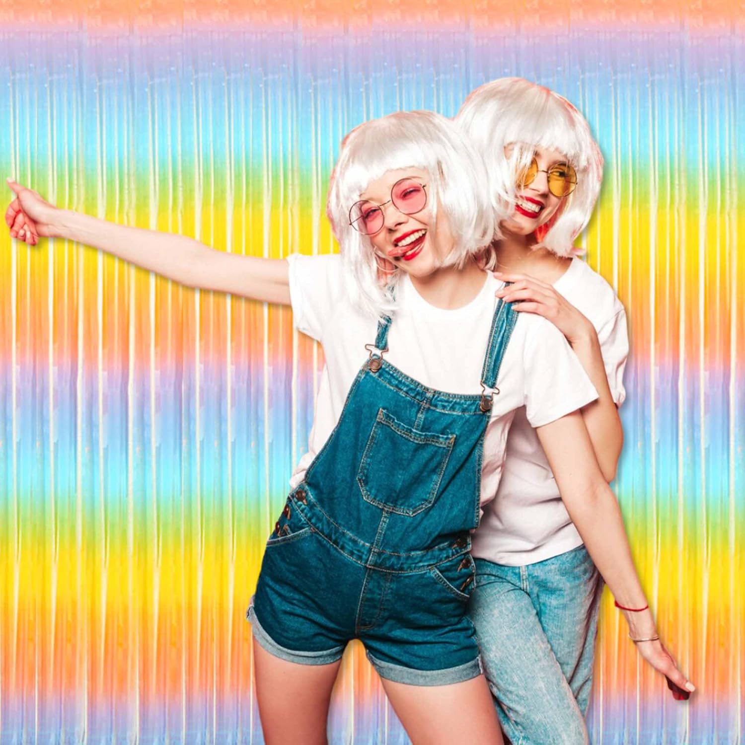 3 Pack Light Rainbow Foil Fringe Curtains Backdrop, 3.28 x 9.8 Ft Metallic Streamers Tinsel Curtains Background for Photo Booth, Birthday, Halloween, Christmas, New Year Party Decorations