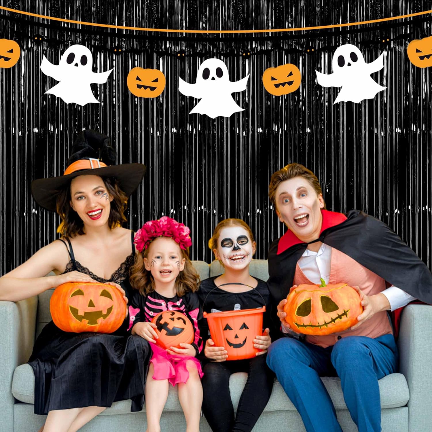 3 Pack Black Foil Fringe Curtains Backdrop, 3.28 x 9.8 Ft Metallic Streamers Tinsel Curtains Background for Photo Booth, Birthday, Halloween, Christmas, Thanksgiving, New Year Party Decorations