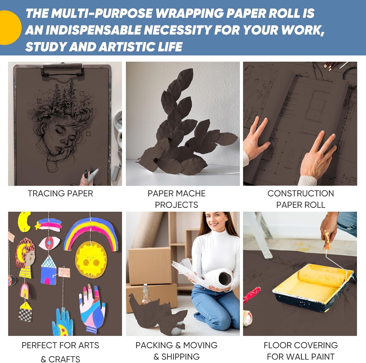 - 【Endless Chocolate Brown Packing paper】With 38 feet of packing paper in a roll, you have enough paper to complete multiple projects without having to constantly restock. It saves you time and money compared to buying smaller rolls or sheets of paper. This blank canvas is a must-have paper roll item for packing, crating, shipping, moving, mailing, postal, parcel, sublimation printing, packaging fillers, table runner and floor coverings.