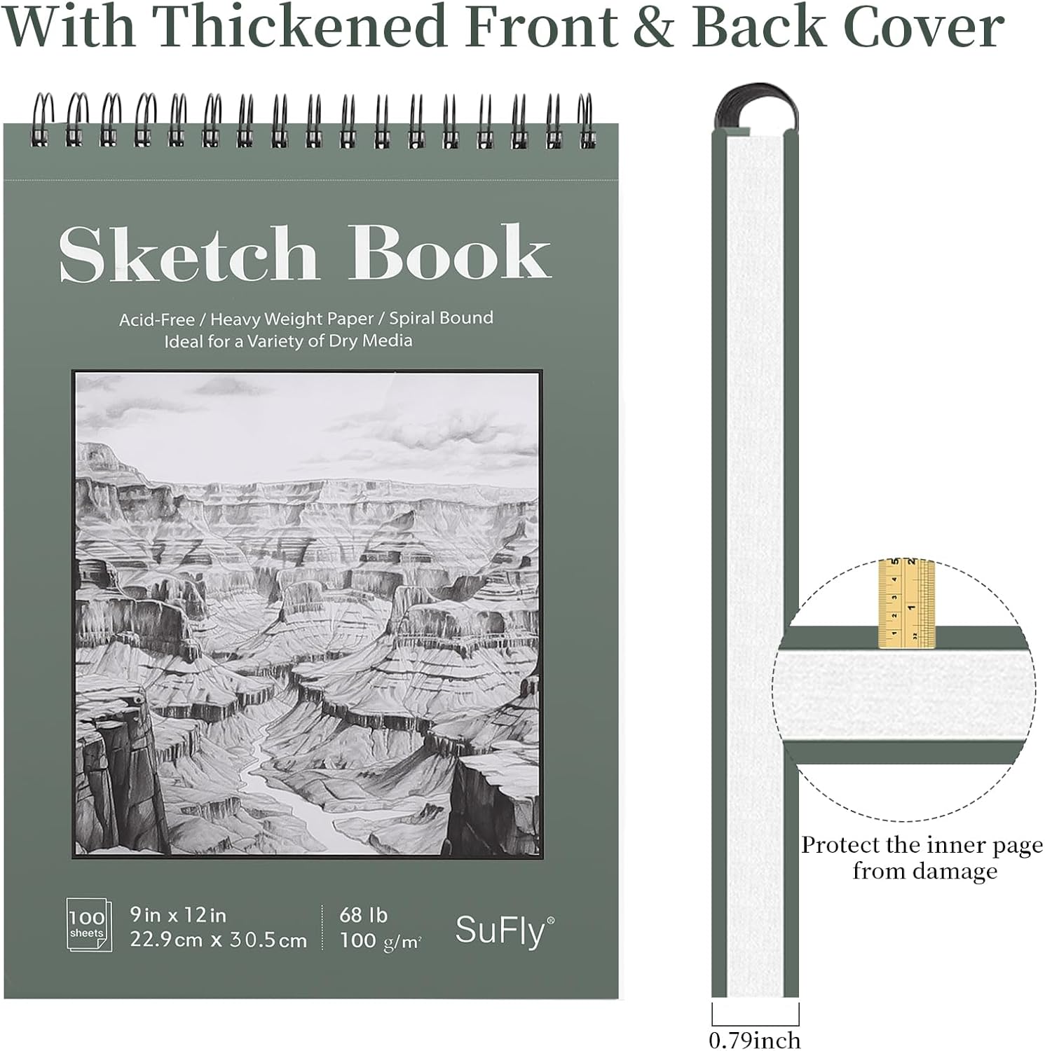 - 【High-Quality Sketching Paper】In the realm of drawing paper pads, our hardcover sketch book boasts acid-free, PH-neutral paper that distinctly stands out. Sized perfectly as a 9 x 12 sketchbook, it weighs a robust 68lb/100gsm, proving thicker and more resilient. For artists who favor a top spiral sketchbook, ours ensures no bleed-through, smudging, or feathering.