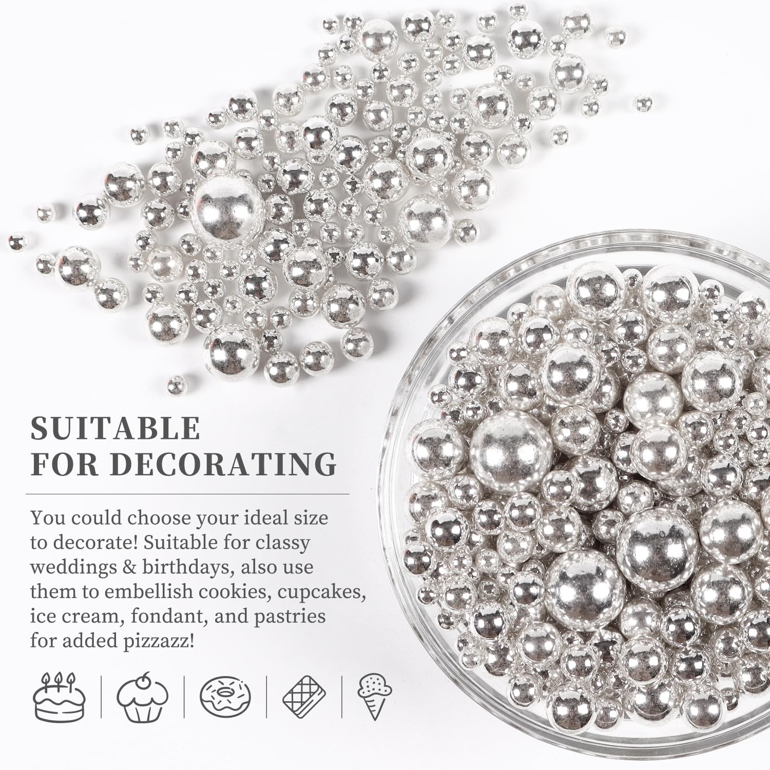 - Pearls for Cake Decorating: The perfect silver pearl sprinkles for cakes, cupcakes, ice cream, cookies, macarons, donuts, and more. Make them sparkle and 3D. It's best for decorating after your items have already been baked, avoid melting during baking.