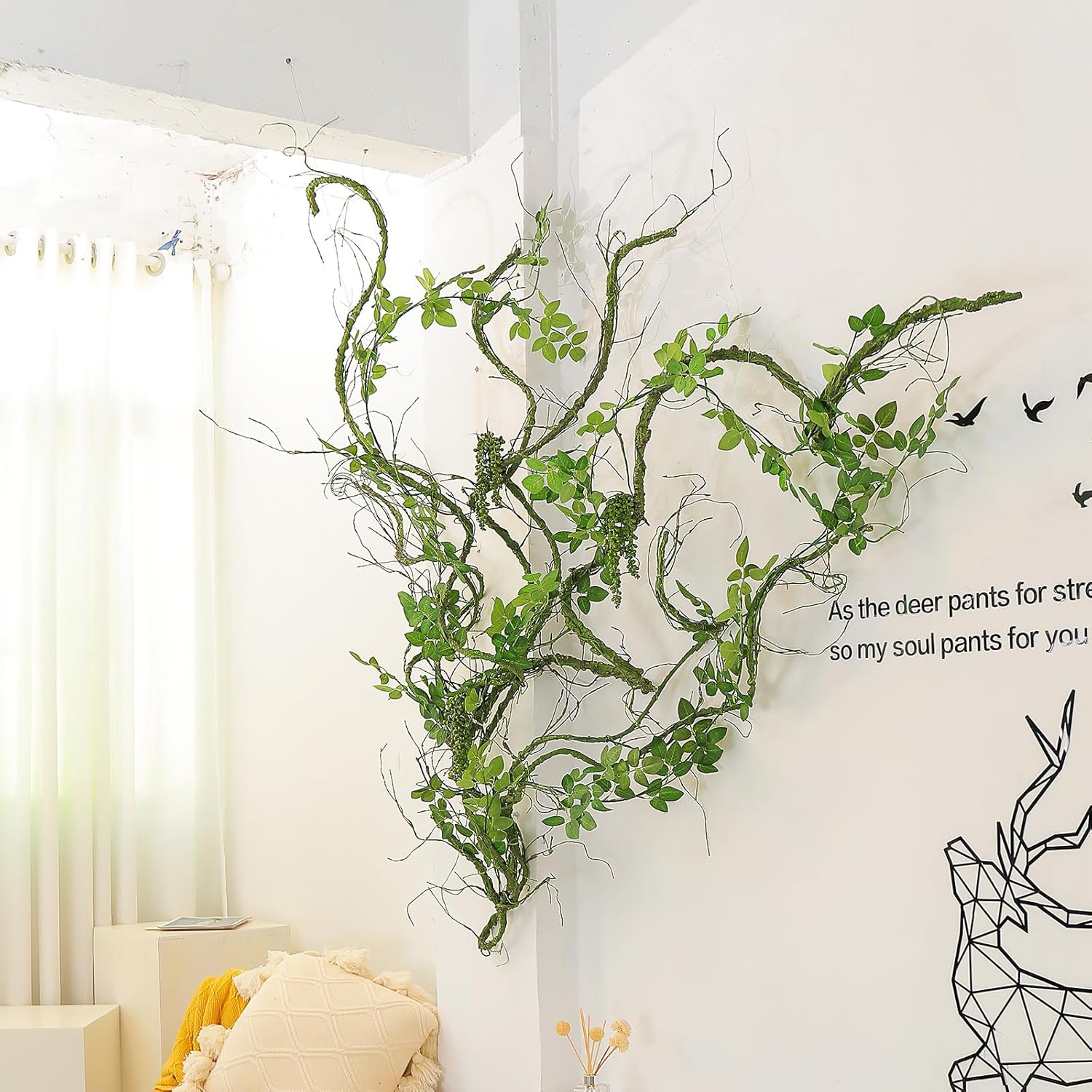 118 inch Big Artificial Green Tree Branches Ivy Grapevine Garland Fake Tree Trunk Wall Door Hanging Plants Twigs Moss for Garden Home Wedding Outdoor Jungle Leaves Room Decoration