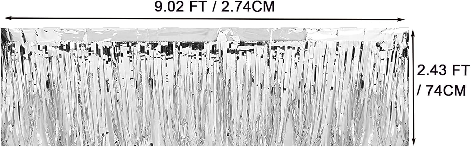 4 Pack Metallic Foil Fringe Tinsel Table Skirts,29x108 Inch Party Disposable Table Skirt Banner for Hotel Banquet Parade Floats Mardi Gras Holiday Birthday Wedding New Year Party Decoration(Silver)
