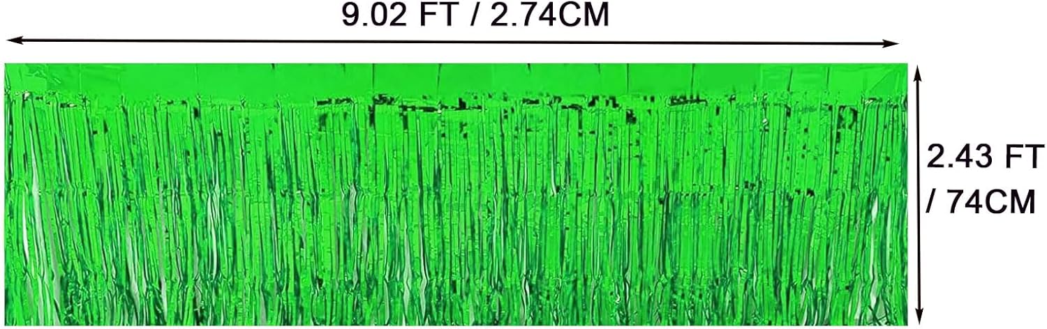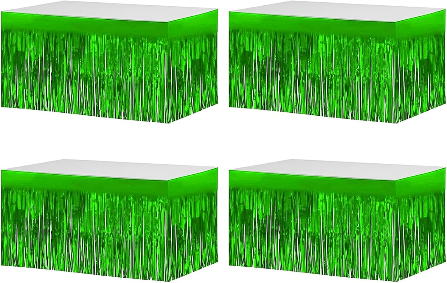 4 Pack Metallic Foil Fringe Tinsel Table Skirts,29x108 Inch Party Disposable Table Skirt Banner for Hotel Banquet Parade Floats Mardi Gras Holiday Birthday Wedding New Year Party Decoration(Green)
