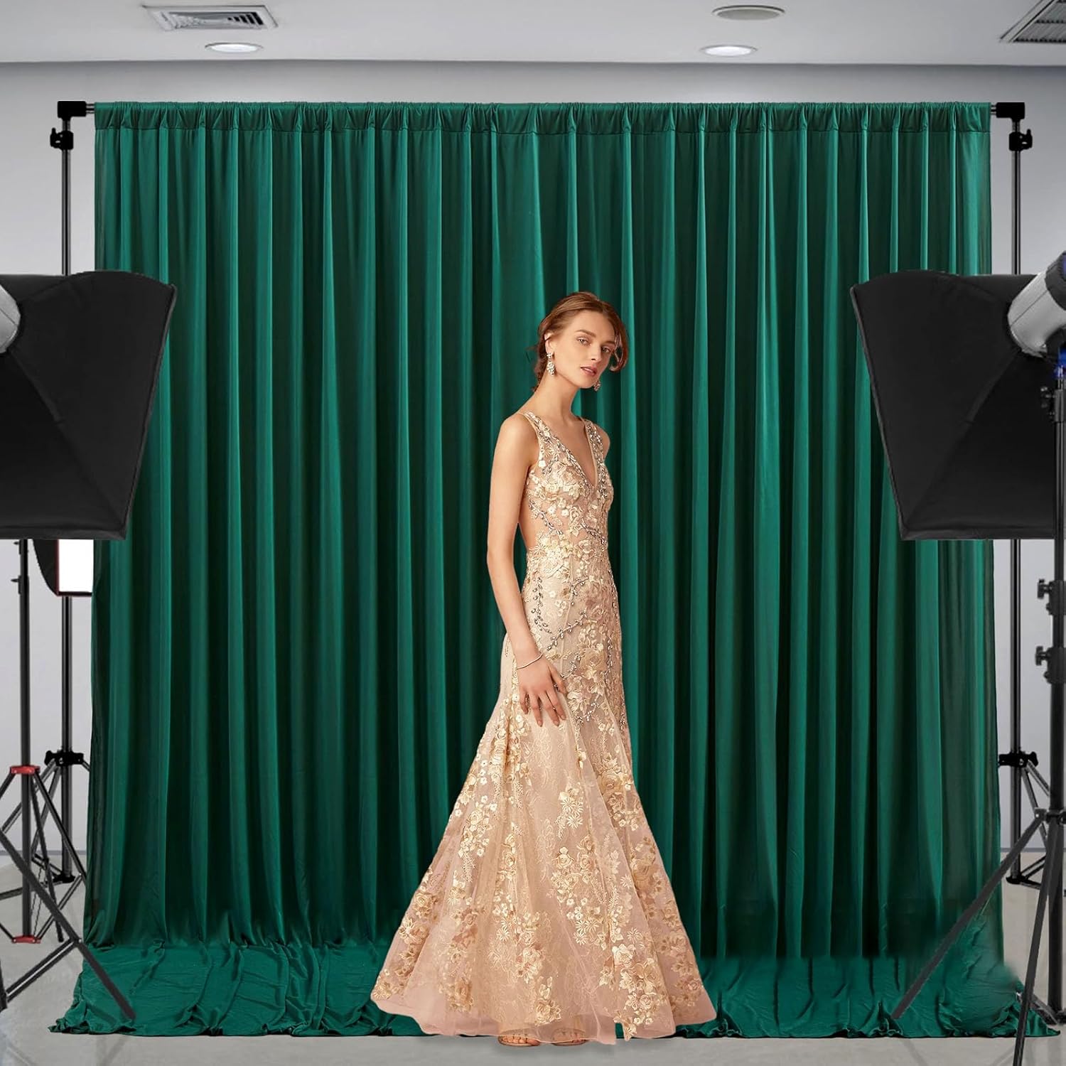 10 x 10 Feet Dark Green Backdrop Curtain for Partie, Background Curtains for Photoshoot, Birthday, Wedding, Halloween, Thanksgiving, Christmas Day, New Year Party Decorations 5Ft x 10Ft, 2 Panels