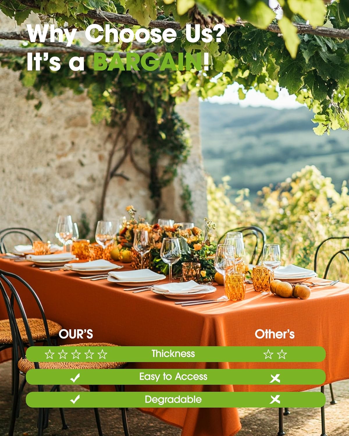 - FOR ALL OCCASIONS: With the universal size and multiple color options, our disposable table cloths are widely applicable to kinds of events, parties, church functions, work events, one-time use, and even practical everyday use.