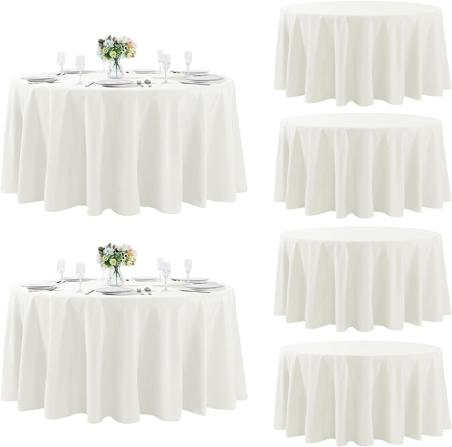 Fokitut 6 Pack Round Tablecloth, 120 Inch, Stain Resistant and Wrinkle Polyester Table Cloth, Fabric Table Cover for Kitchen Dining, Wedding, Party, Holiday Dinner-Ivory